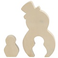 Twee charmante sneeuwpoppen in één! Deze figuren zijn gemaakt van licht hout en passen mooi in elkaar: de kleine sneeuwpop kan losgemaakt worden van de grote.