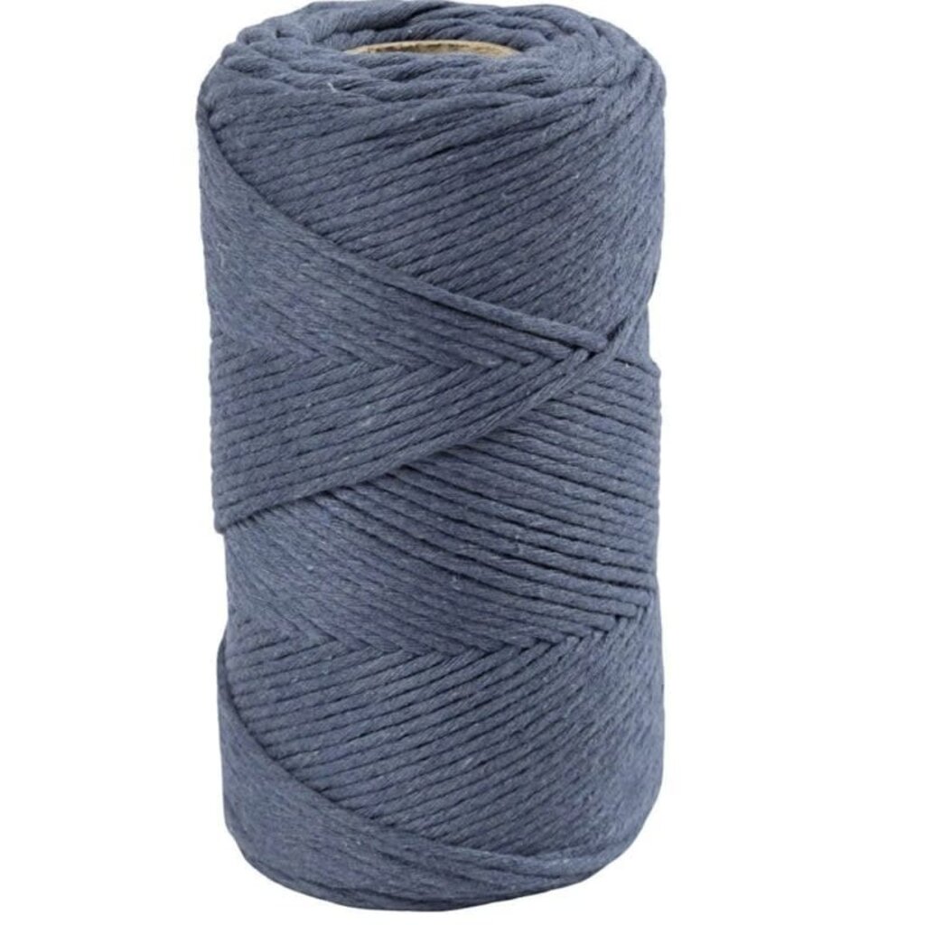 Enkeldraads macramégaren gemaakt van 80% gerecycled katoen en 20% polyester. Dit sterke macramé koord is ideaal voor het knopen van grotere projecten zoals wandkleden, hangende bloemenmanden, net-draagtassen etc.