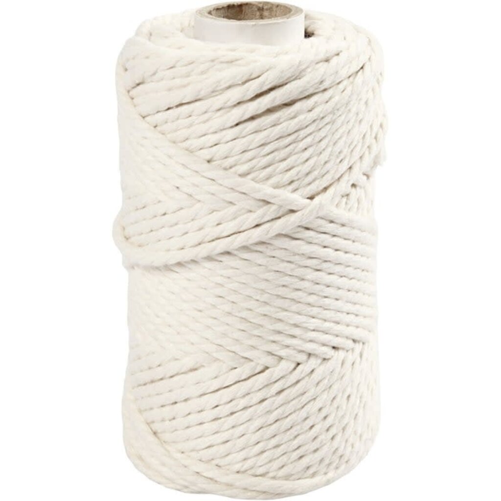 Enkeldraads macramégaren gemaakt van 80% gerecycled katoen en 20% polyester. Dit sterke macramé koord is ideaal voor het knopen van grotere projecten zoals wandkleden, hangende bloemenmanden, net-draagtassen etc.