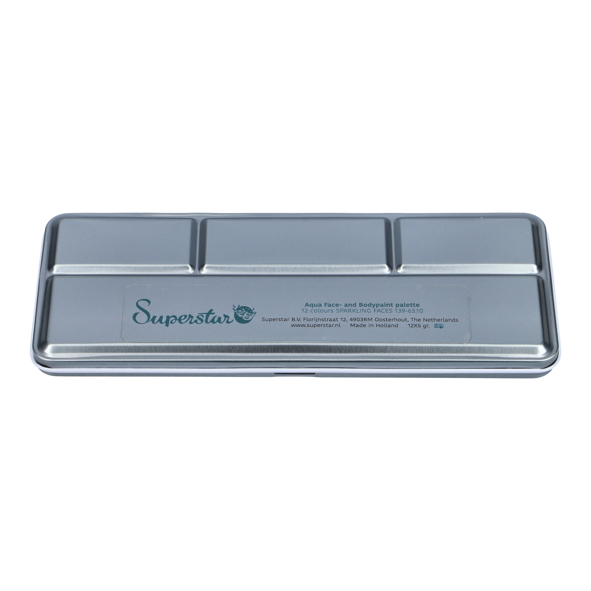Het Superstar Aqua Face-and Bodypaint Palettebevat een hoogwaardige en gebruiksvriendelijke waterschmink die voldoet aan alle strenge eisen van de Europese Cosmetica Wetgeving (1223/2009/EG).