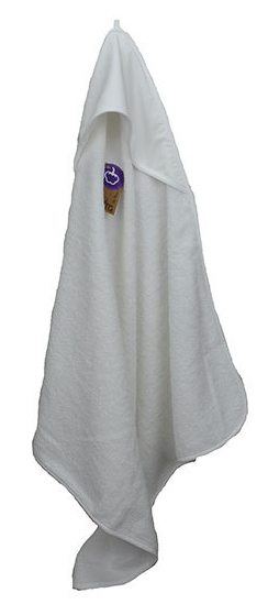 Babyhanddoek met capuchon met een hoek waar uw logo / tekst kan worden bedrukt of geborduurd.