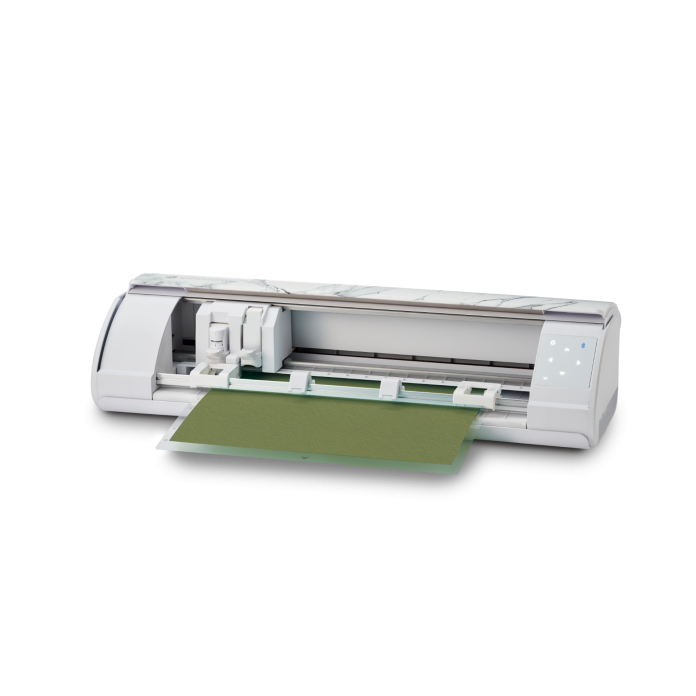De snijplotter heeft een royale snijbreedte van 30,5 cm en kan materialen tot maar liefst 500 cm lengte verwerken. Dankzij de 3 mm vrije hoogte zijn ook dikkere materialen geen probleem. Bovendien geniet je van matloos snijden, automatische toolherkenning en draadloze verbinding via Bluetooth®.
