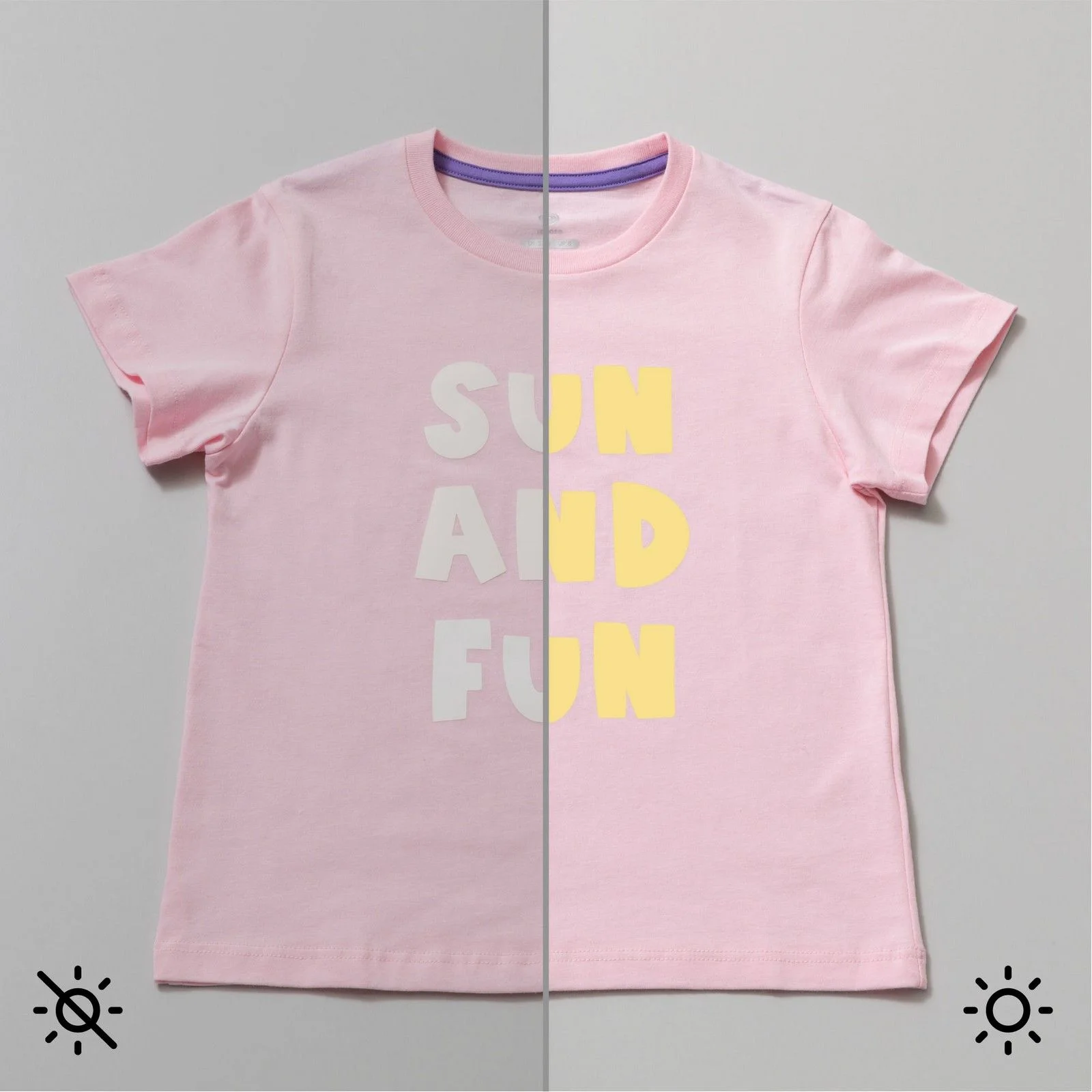 Breng een vleugje magie aan je creaties met de UV-Activated Color-Changing Iron-On – Pastel Yellow. Dit zachte pastelgele flexmateriaal verandert van kleur zodra het in aanraking komt met zonlicht en geeft je kleding, tassen en accessoires een vrolijke en verrassende twist. Perfect voor zomerse projecten of items die je graag mee naar buiten neemt.