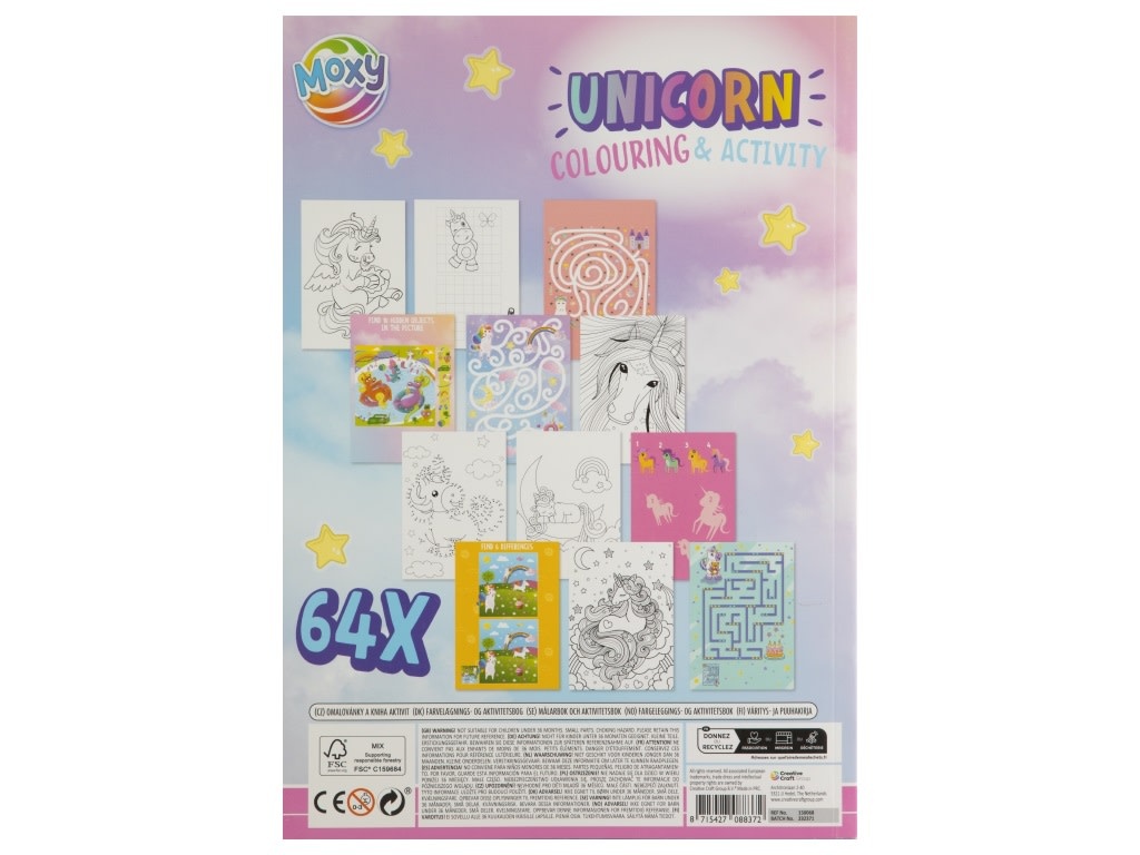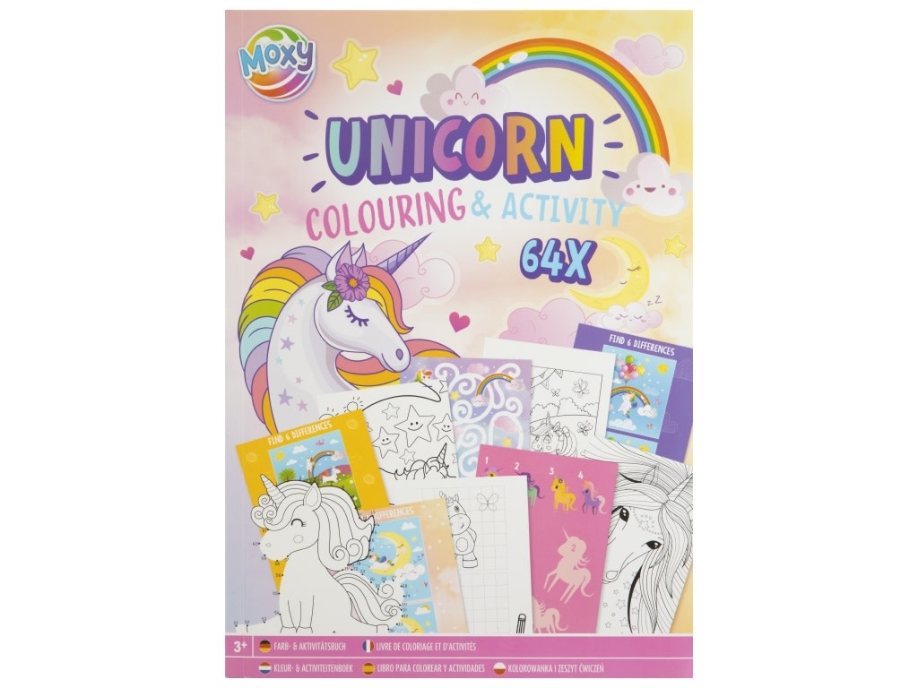 Het Kleur- en Activiteitenboek Unicorn neemt kinderen mee op een betoverende reis door 64 pagina's vol plezier en avontuur.