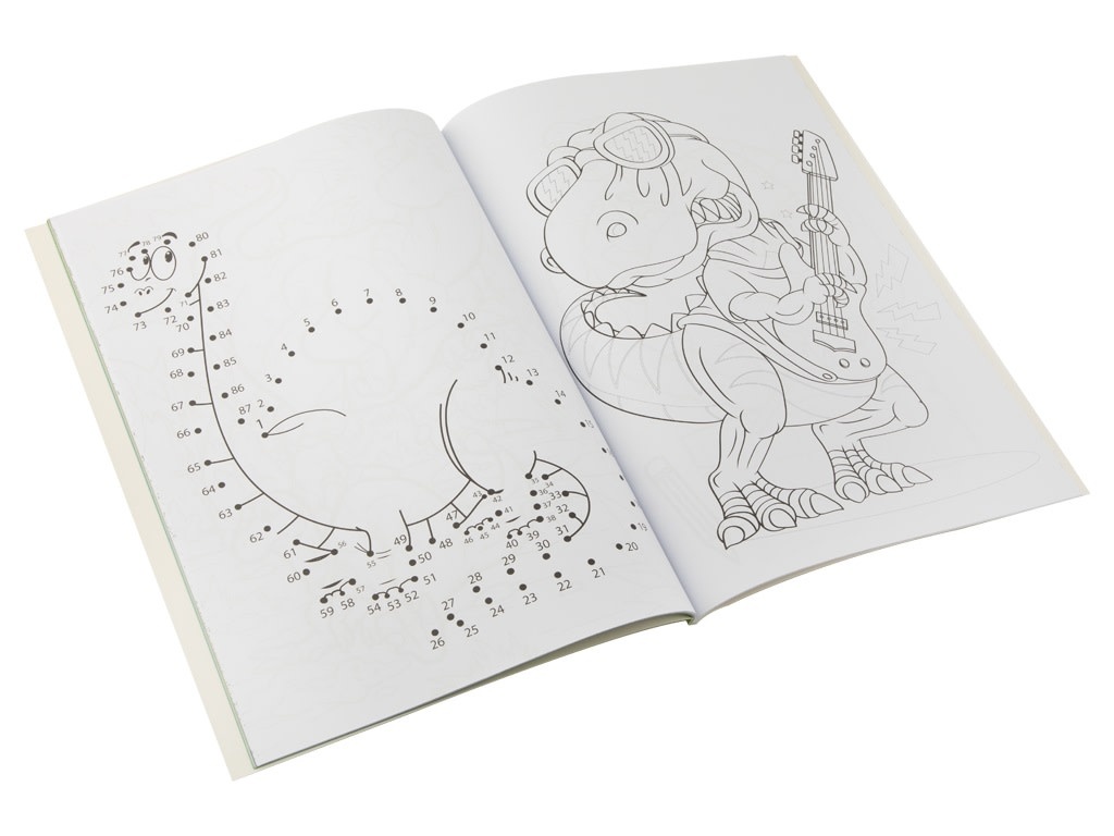 Het Kleur- en Activiteitenboek Dino neemt kinderen mee op een betoverende reis door 64 pagina's vol plezier en avontuur.
