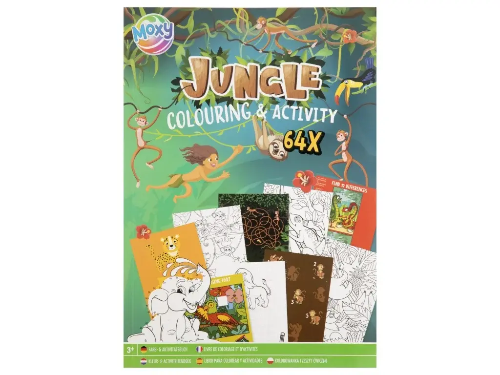 Het Kleur- en Activiteitenboek Jungle neemt kinderen mee op een betoverende reis door 64 pagina's vol plezier en avontuur.