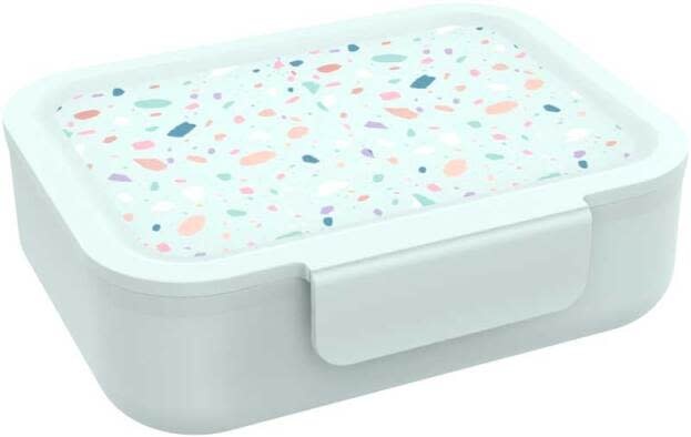 Brooddoos met terrazzovlokken, leuk om te pimpen met vinyl.