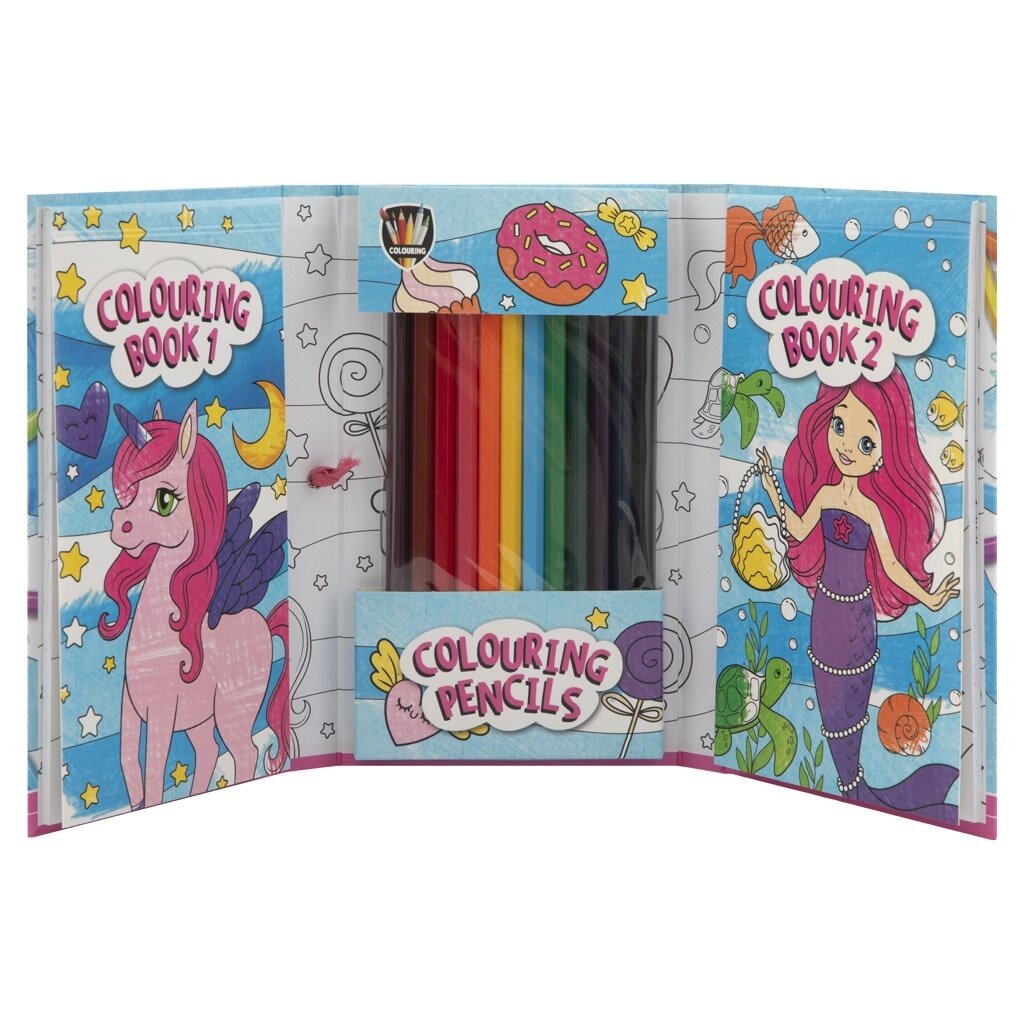 Unicorns en zeemeerminnen - 2 pakjes van elk 30 vellen, samen met 12 potloden. De perfecte metgezel voor onderweg, zodat kinderen overal kunnen genieten van het kleuren van hun favoriete fantasie figuren.