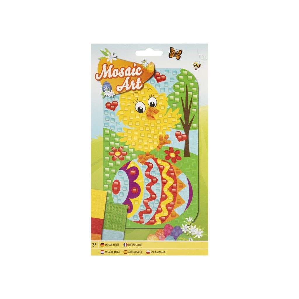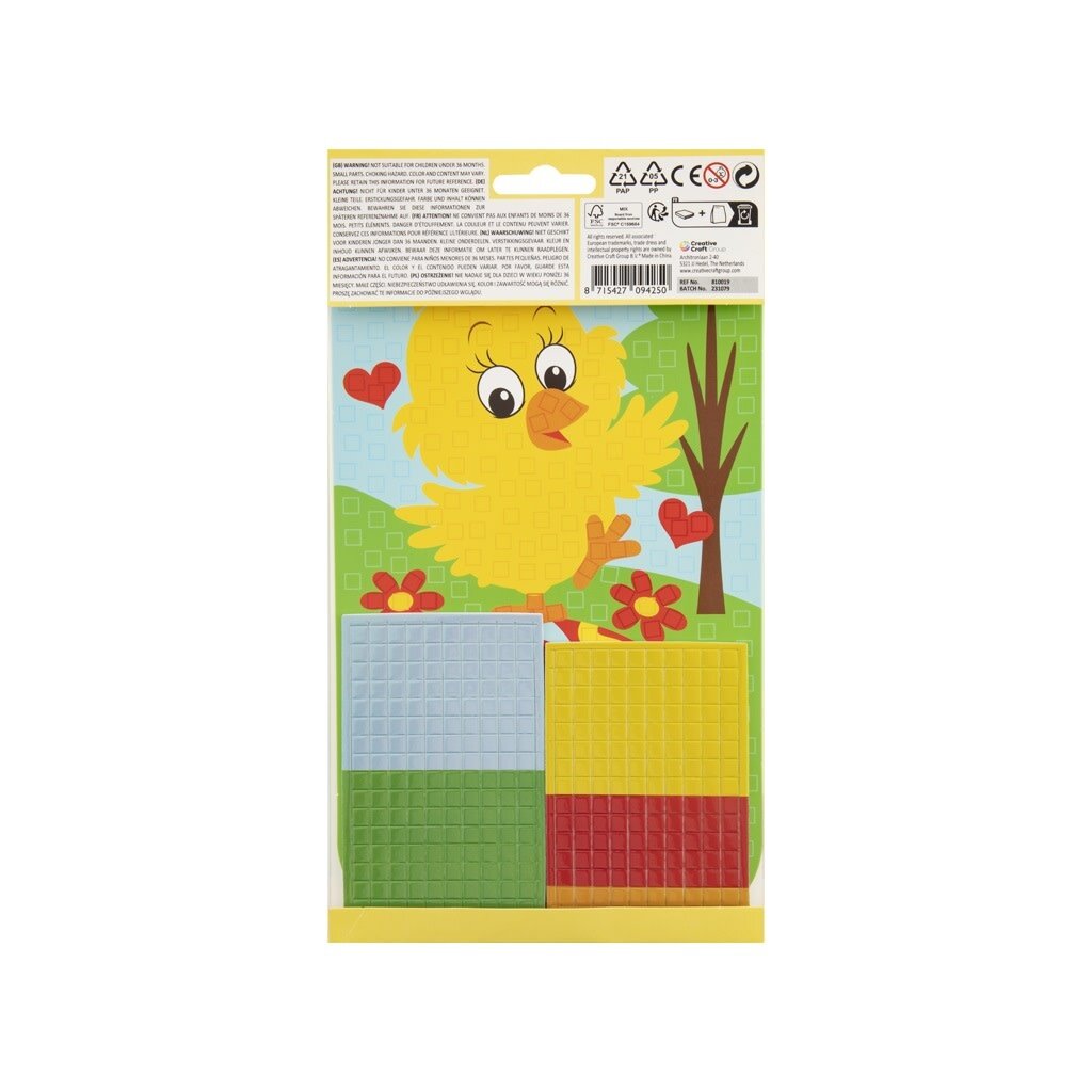Ontdek de magie van mozaïekkunst met onze Mosaic Art A5 set, waar je een schattig kuikentje tot leven brengt met kleurrijke stickertjes!