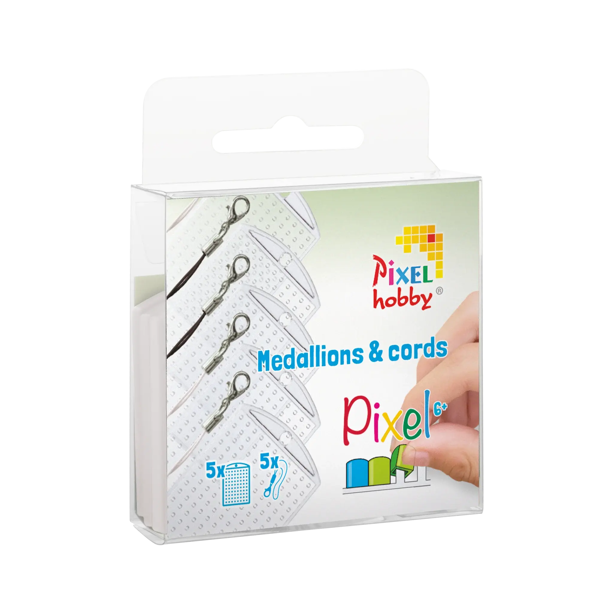 Deze set bevat 5 Pixelhobby medaillons en 5 color cords.