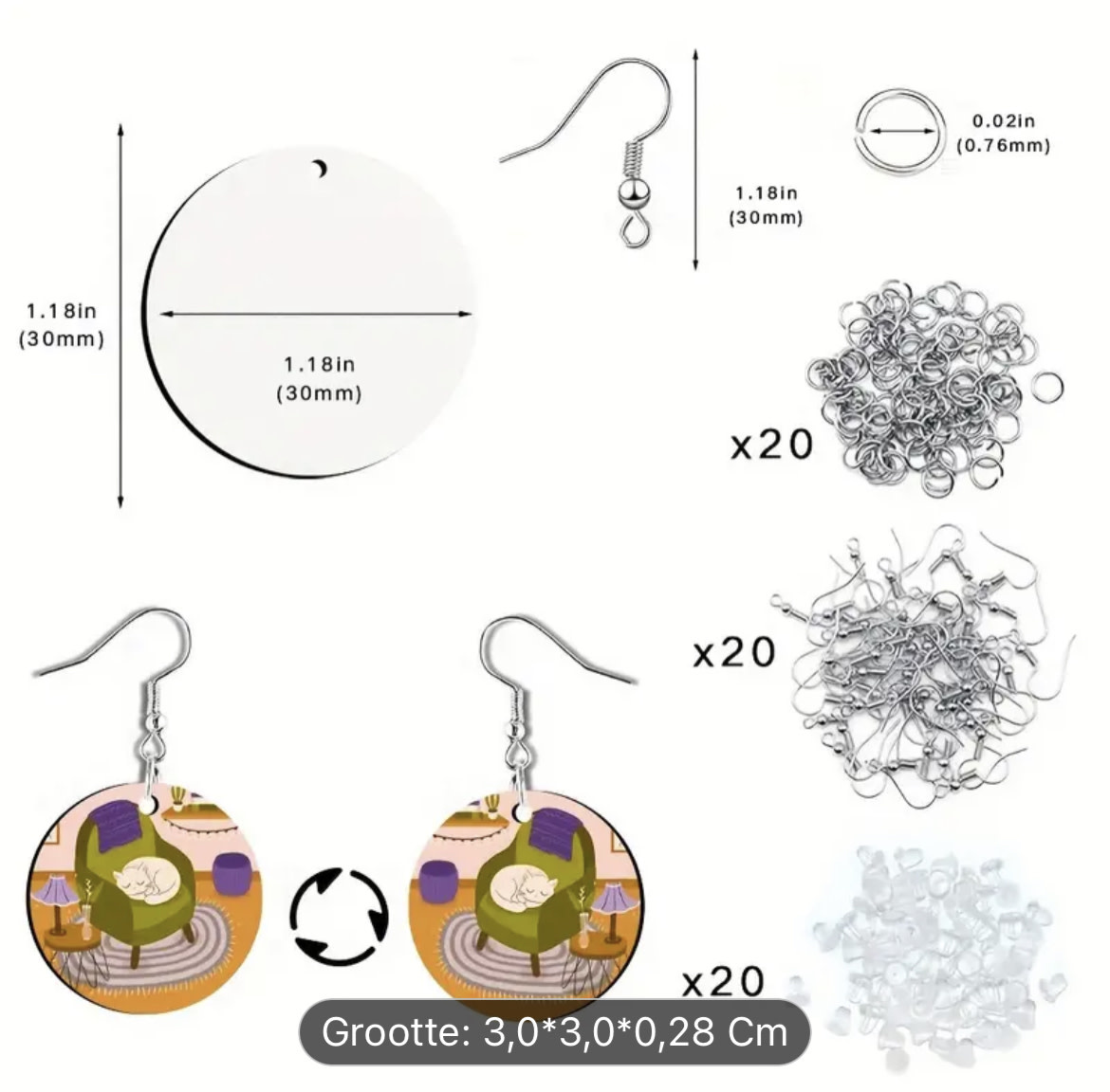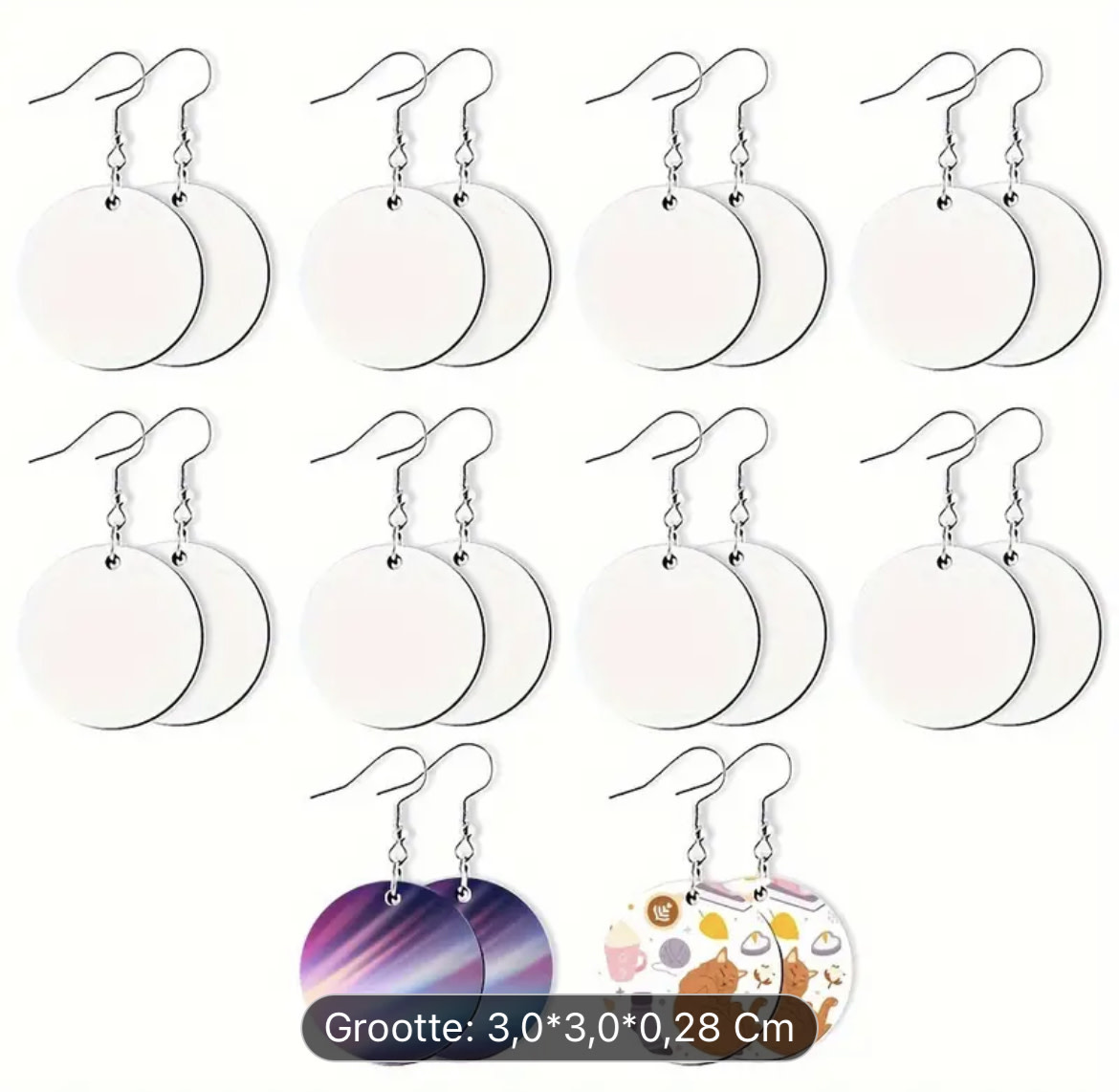 Sublimatie - Set van 20 blanco oorbellen rond
