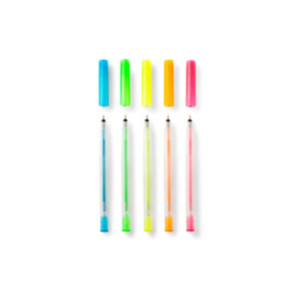 5 pennen met mediumpunt (0,8) in roze, oranje, geel, groen en blauw