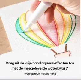 Teken je ontwerp met markers met behulp van je machine en voeg vervolgens een scheutje water toe aan het waterpenseel* om prachtige aquareleffecten uit de vrije hand te maken.
