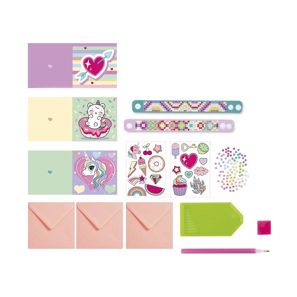 Met deze betoverende kit kun je niet alleen schitterende armbanden maken, maar ook prachtige kaarten en sprankelende stickers versieren.