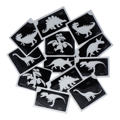 The Superstar Dino glittertattoo Stencils zijn de ideale sjablonen om eenvoudig een coole glittertattoo te creëren.