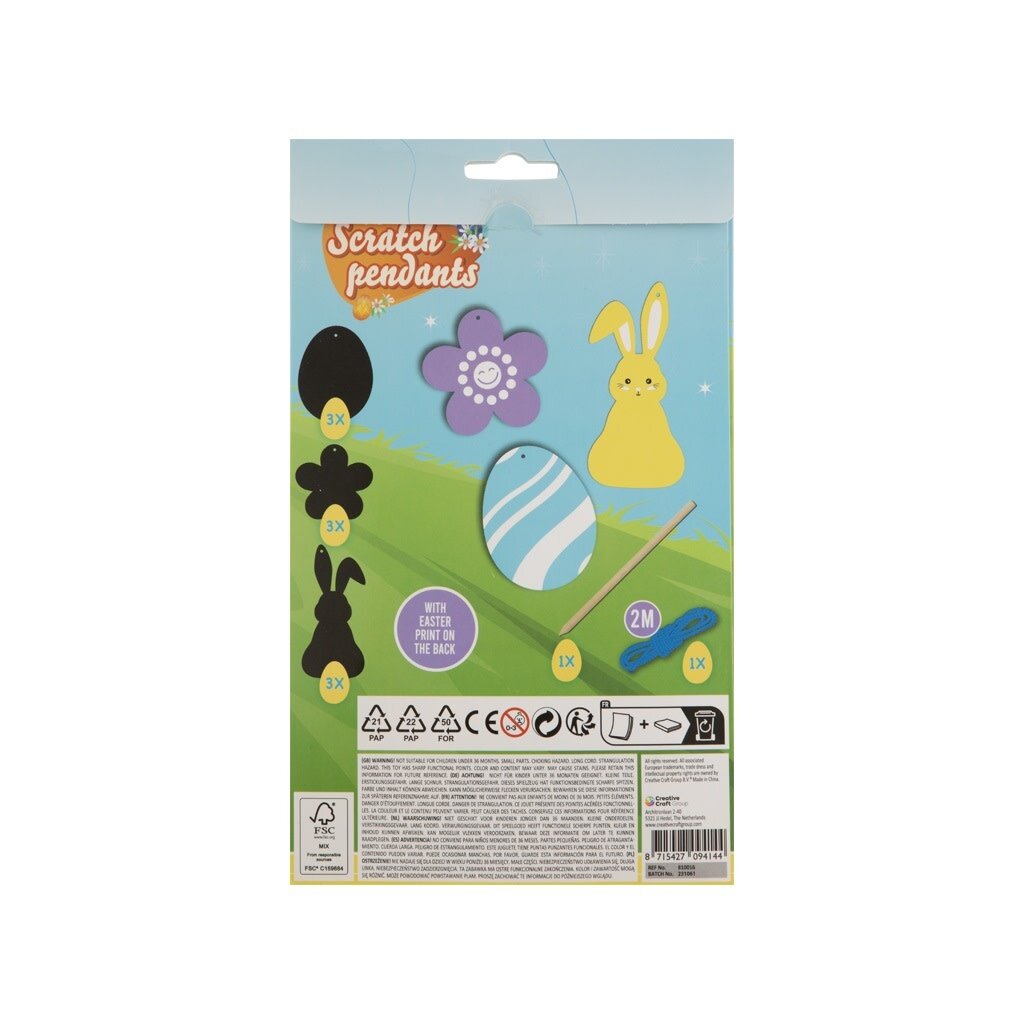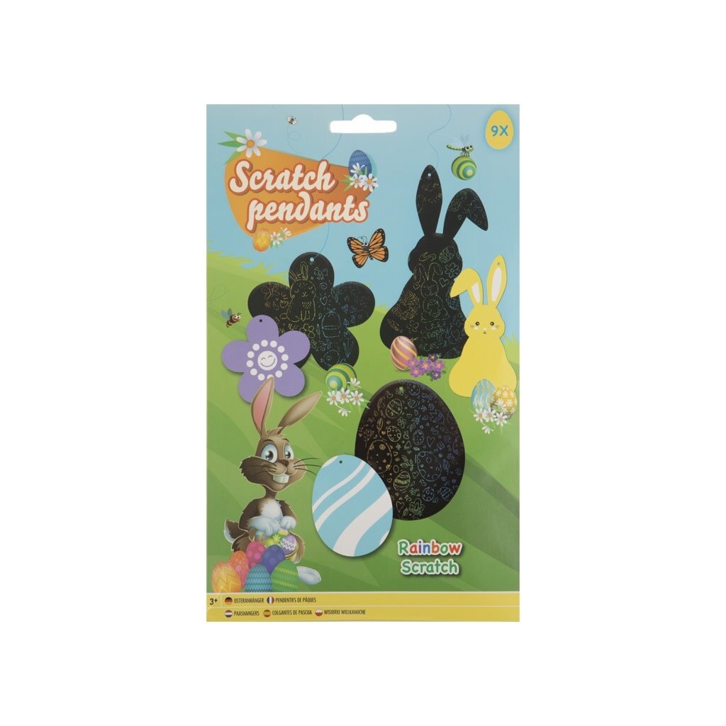 Ontdek een wereld van kleur met onze Regenboog Scratch Pendants voor Pasen! Deze betoverende set bevat 9 ornamenten, waaronder eieren, paashazen en bloemen, allemaal klaar om jouw artistieke visie tot leven te brengen.