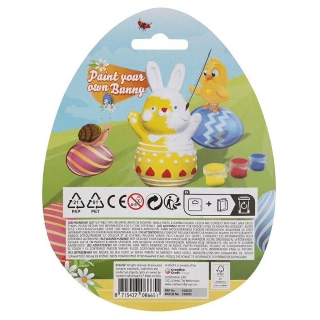 - Drie kleuren verf in vrolijke, tinten om je konijn tot leven te brengen.