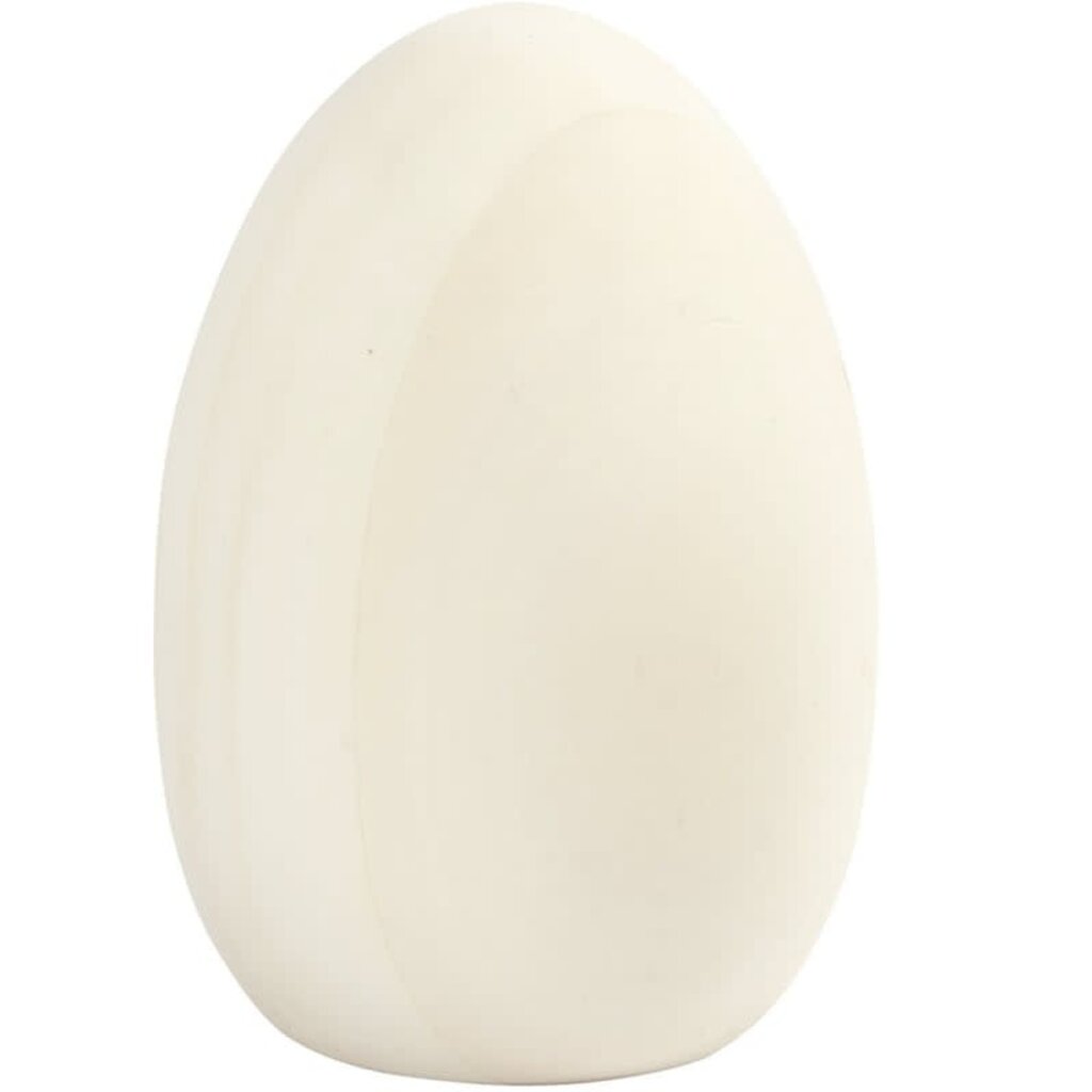 Ei van licht hout met een platte onderkant, zodat deze zelfstandig kan staan.