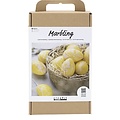 Inhoud: Magic Marble marmerverf, plastic eitjes, bloemdraad, hangertje en touwtje.