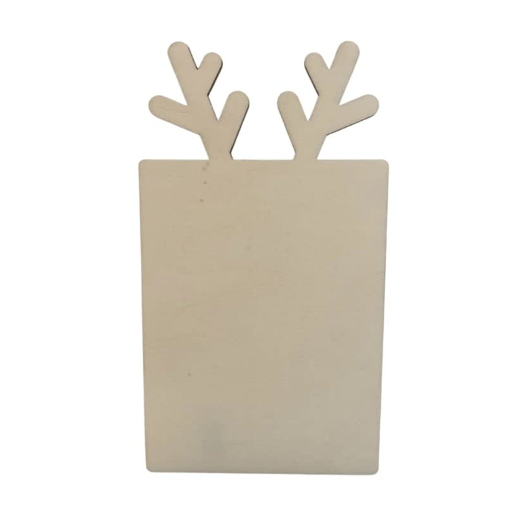 Deze houten kaart met rendierillustratie is een charmant alternatief voor de klassieke kerstkaart. De natuurlijke houtstructuur geeft elke kaart een unieke uitstraling, en dankzij het rendiergewei krijgt ze een speels, feestelijk accent.