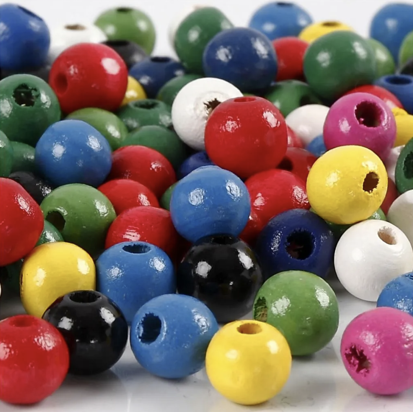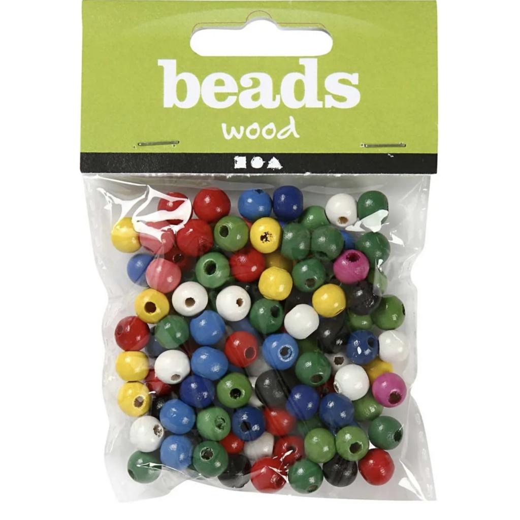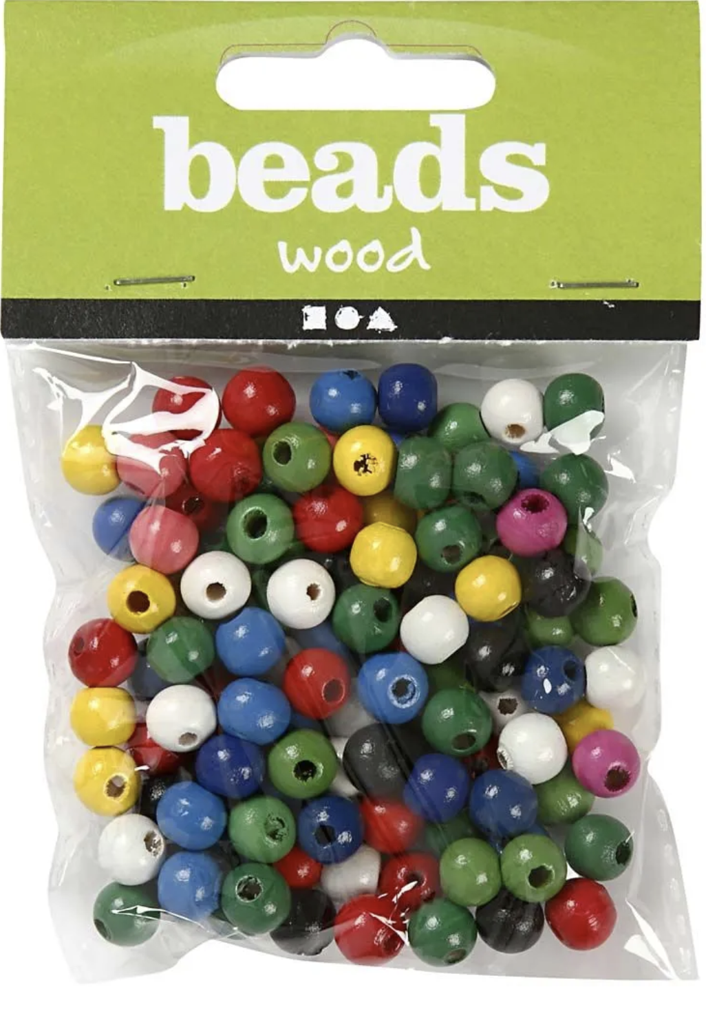 Veelzijdige mix van 7 vrolijk gekleurde houten kralen.