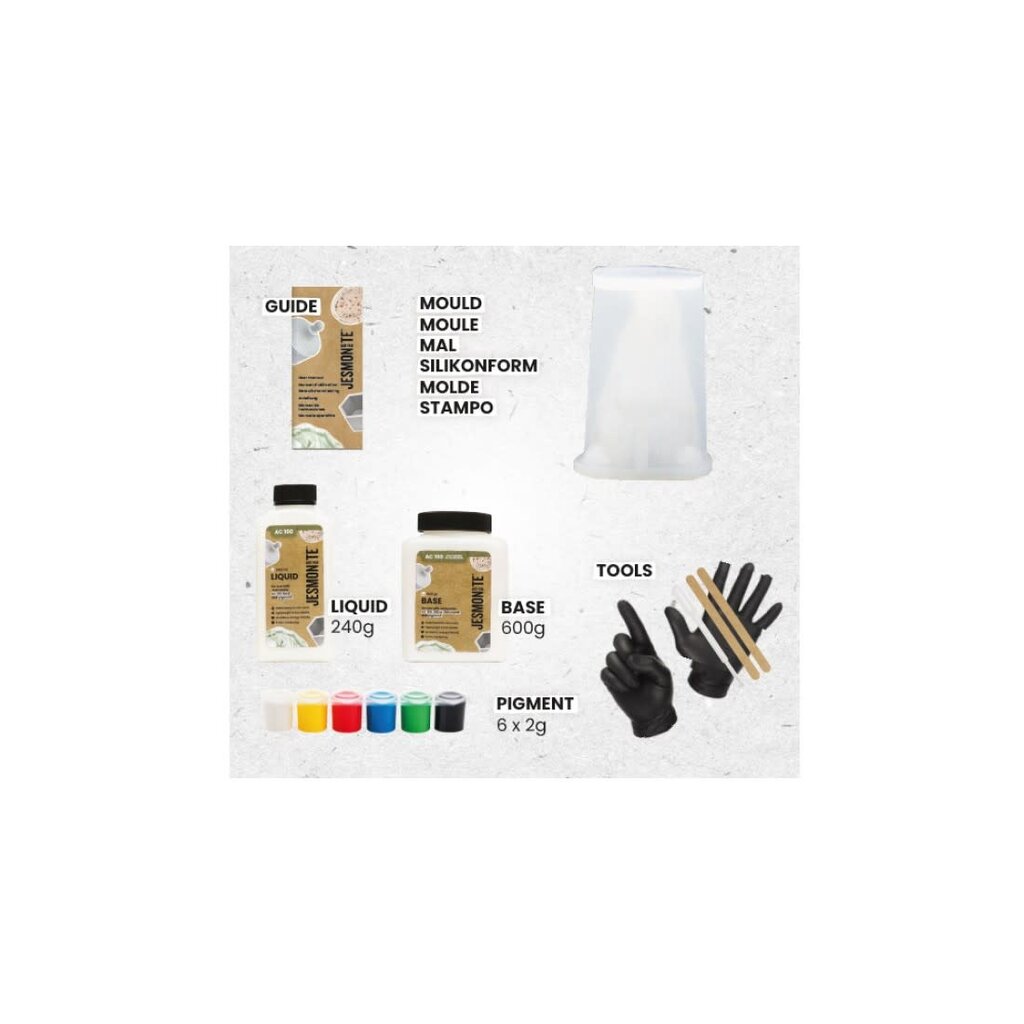 Jesmonite is een niet-giftige acrylhars waar je de mooiste decoratieve creaties mee kan maken. De kit bevat alles wat je nodig hebt, inclusief pigmenten, herbruikbare siliconen vormen en stapsgewijze instructies die je door elke fase leiden.