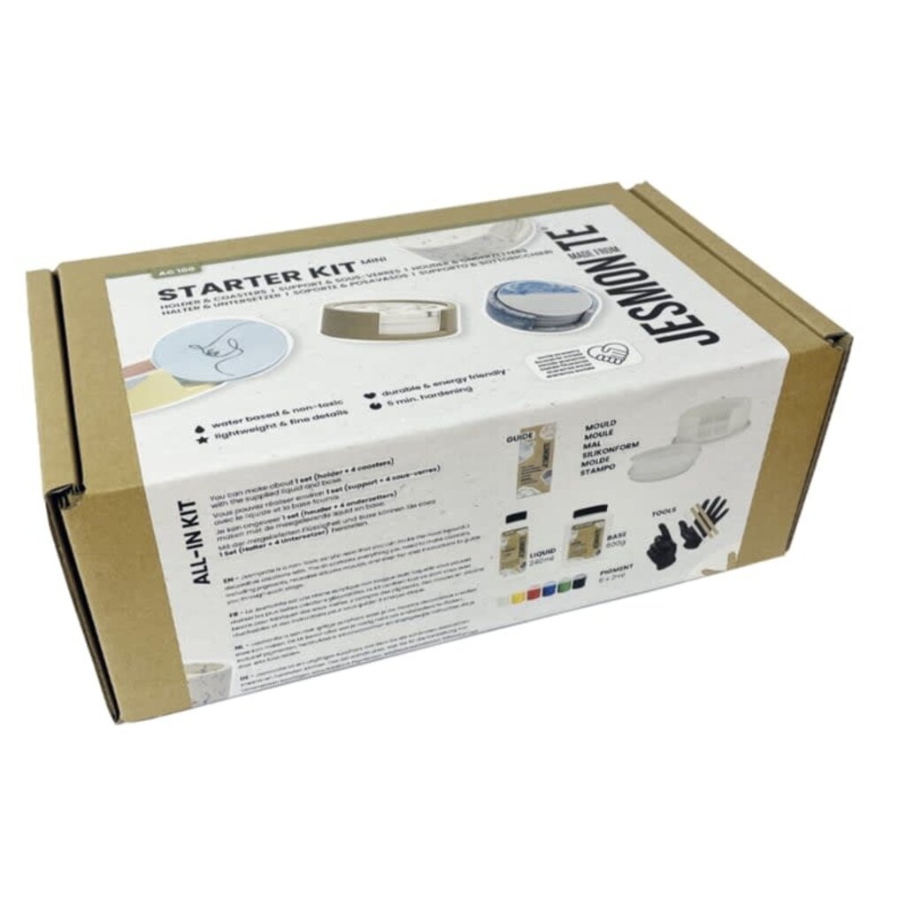 Deze kit bevat alles wat je nodig hebt om onderzetters te maken, inclusief pigmenten, herbruikbare siliconenvormen en stapsgewijze instructies die je door elke fase leiden.