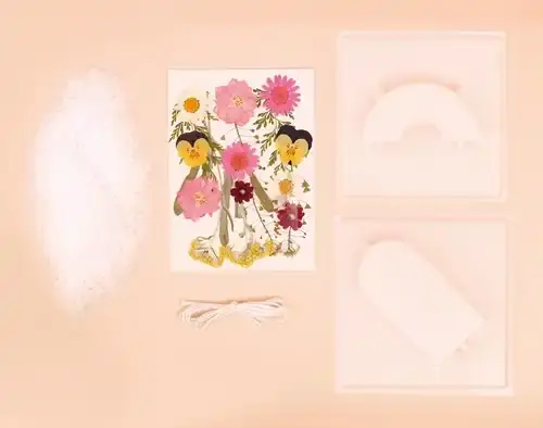 Creëer prachtige kaarsen met droogbloemen! Leg de bloemen in de mal en giet de paraffine erover. Ontdek hun betoverende schoonheid bij het uithalen!