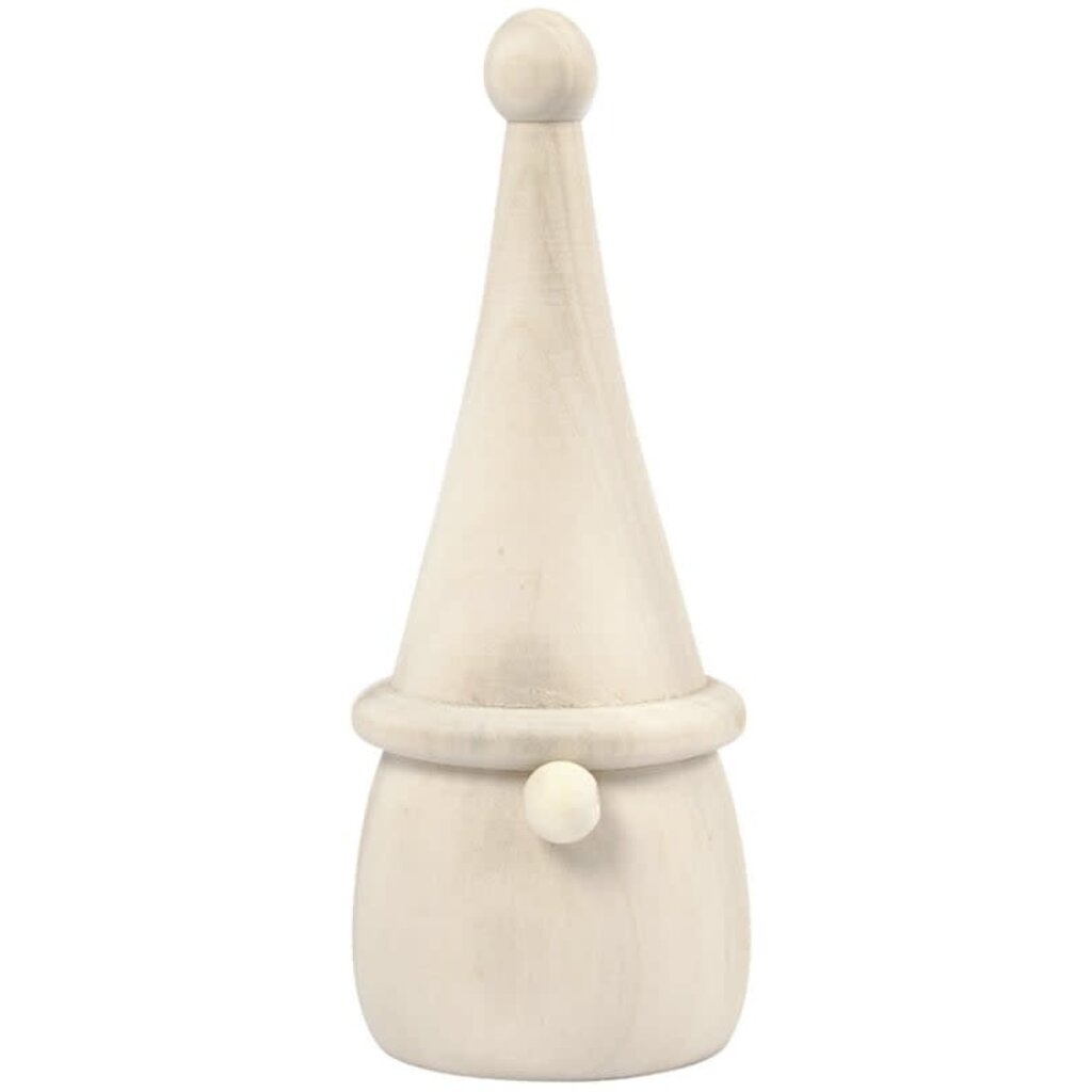 Deze houten kabouter (h: 8 cm, Ø: 3 cm) is een charmant figuurtje met een eenvoudige, natuurlijke uitstraling. Gemaakt van gedraaid, licht hout en afgewerkt met een karakteristieke puntmuts en neus.