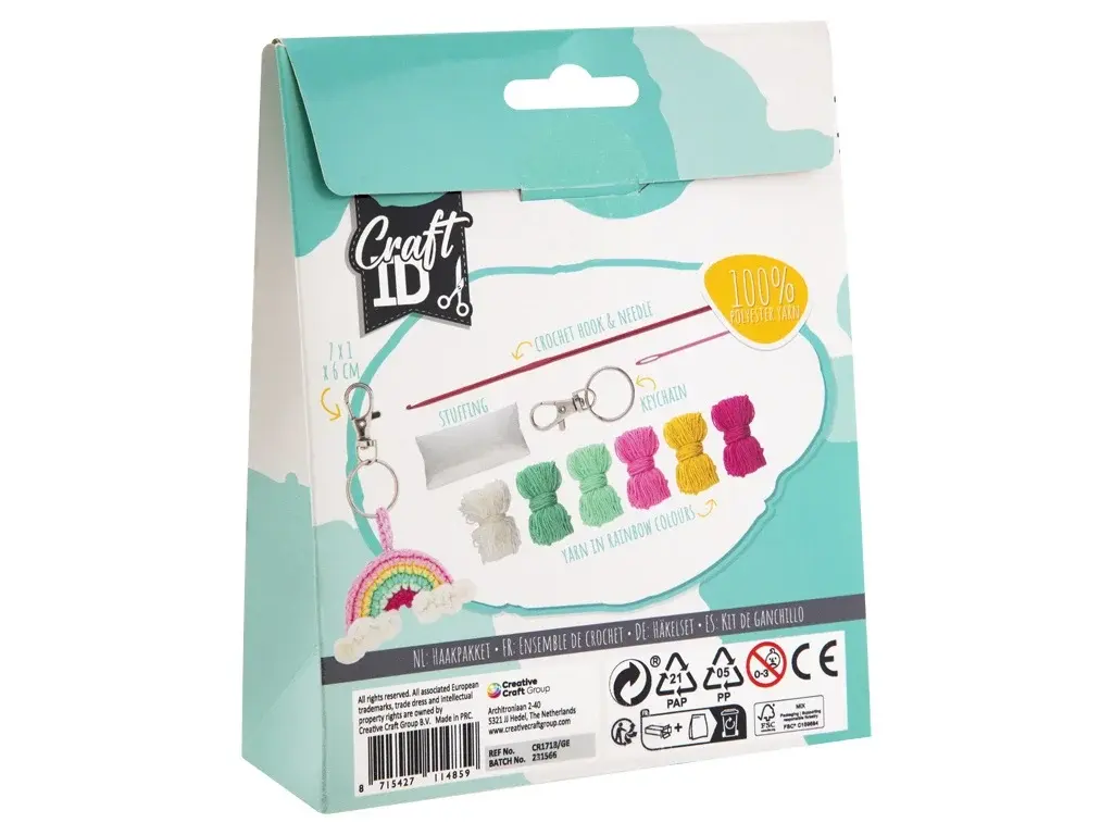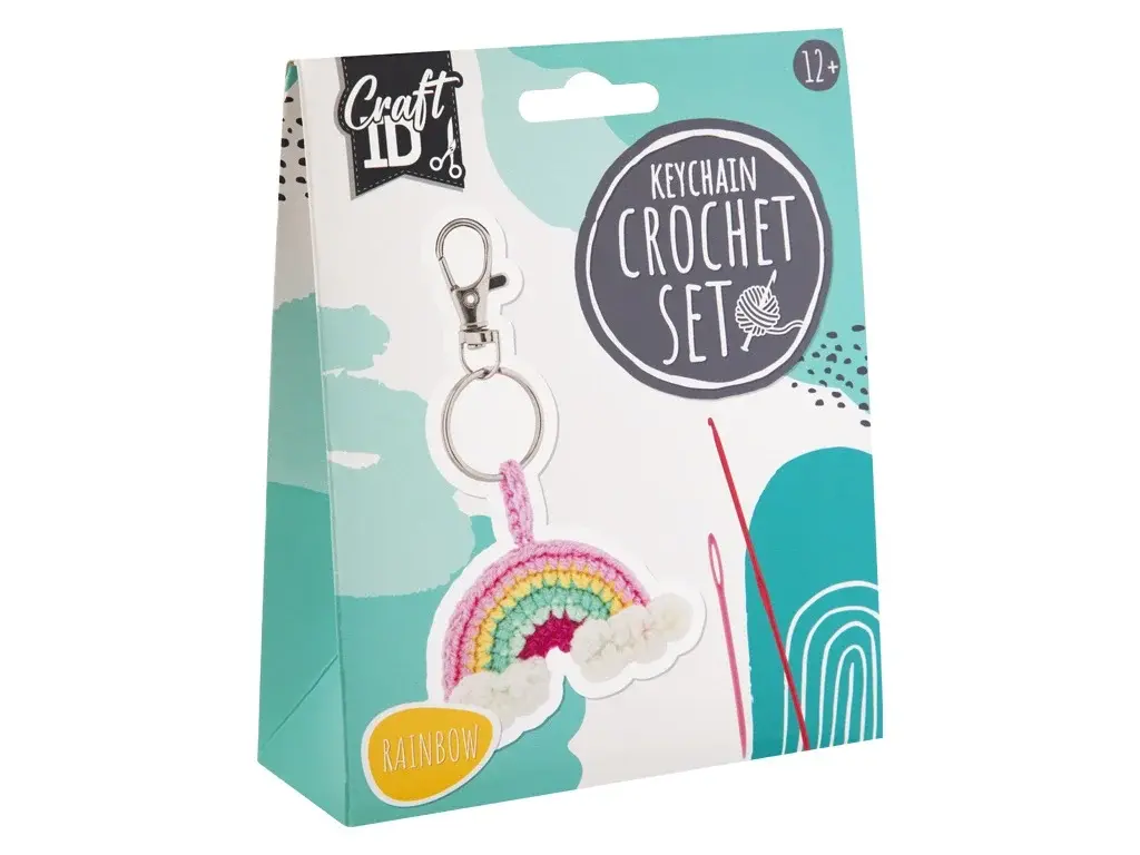 Met deze haak kit kun je je eigen kleurrijke regenboog-sleutelhanger maken! De kit bevat alles wat je nodig hebt om een schattige en levendige sleutelhanger van 7x1x6 cm te haken.