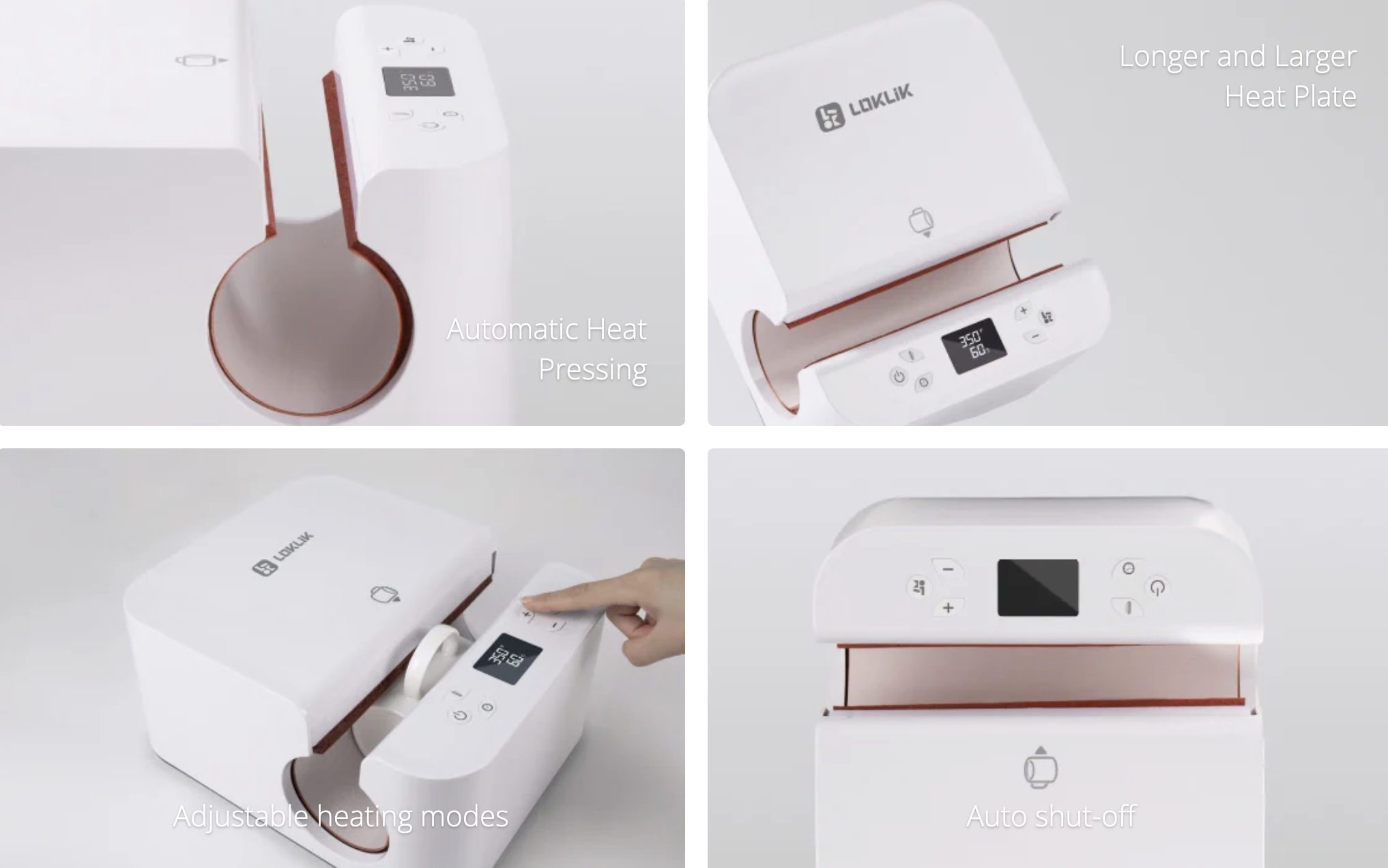 De LOKLiK Auto Tumbler Heat Press is een geautomatiseerde hittepers speciaal ontworpen voor mokken en tumblers. Met één druk op de knop sluit de pers automatisch, zodat zowel beginners als professionals moeiteloos en efficiënt kunnen werken.