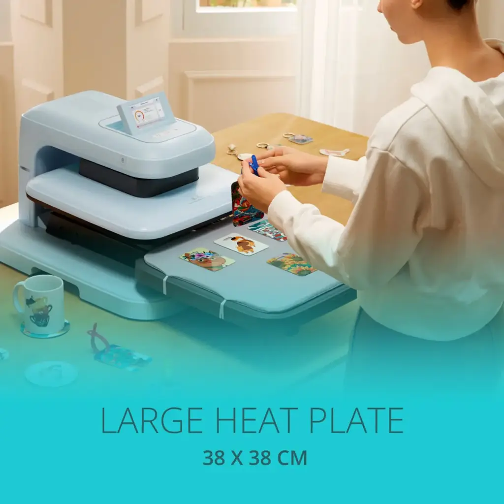 De LOKLiK ImPress™ Auto 2-Smart is dé slimme hittepers voor creatievelingen, kleine ondernemers en doe-het-zelvers. Met automatische drukinstelling, een uitschuifbare lade en een groot persoppervlak maak je moeiteloos professionele projecten. Ideaal voor HTV, sublimatie, transferpapier en DTF-prints.
