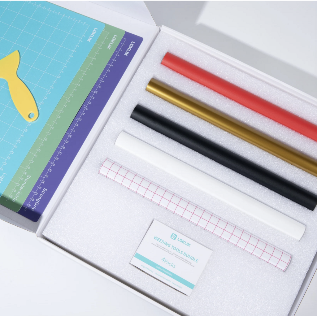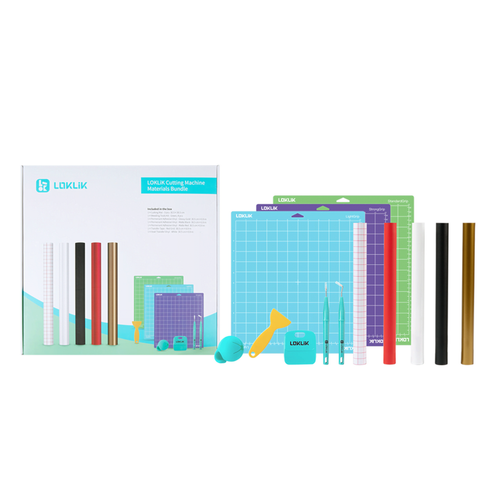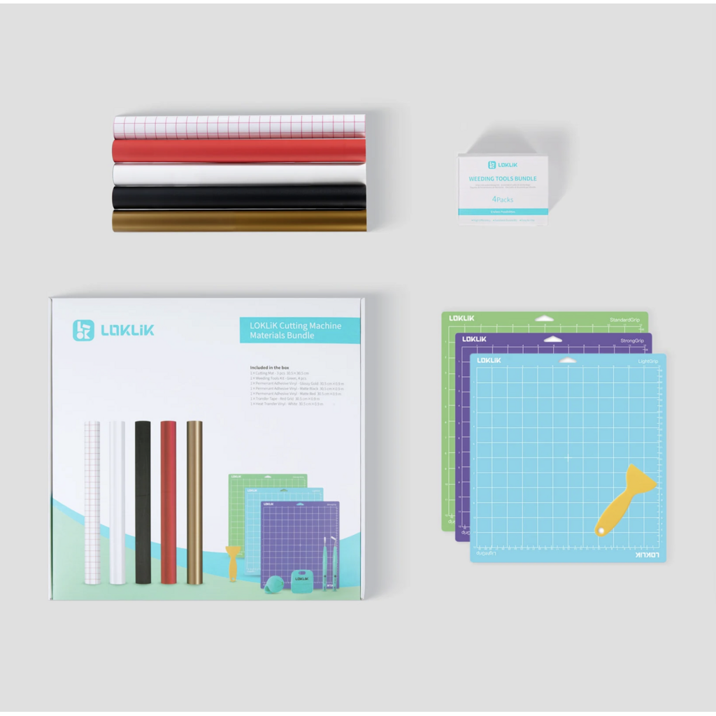 Het LOKLiK Starter Pack bevat alles wat je nodig hebt om meteen creatief aan de slag te gaan met je snijplotter. Van snijmatten en weeding tools tot vinyl en transfer tape – dit pakket is de perfecte basis voor beginners én voor iedereen die zijn creatieve voorraad wil aanvullen.