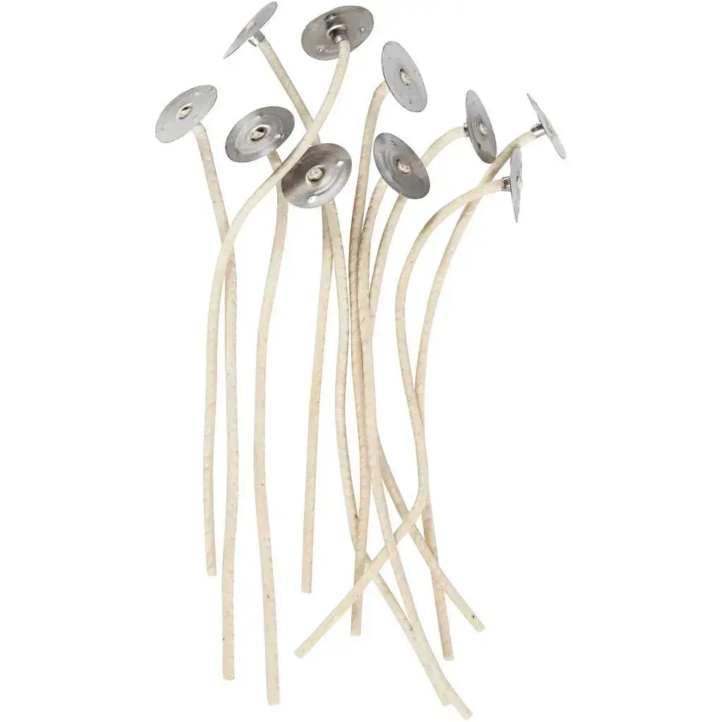 Kaarsen gieten: Giet eerst een kleine hoeveelheid paraffine in de bodem van de mal en plaats het kleine voetje van de lont in het midden van de mal. De paraffine werkt als lijm en houdt de lont op zijn plaats. Giet nu de hete paraffine in de mal en zorg ervoor dat de lont rechtop blijft staan. Laat een stukje van de lont uit de paraffine omhoog steken zodat u de kaars kunt aansteken als deze is afgekoeld.