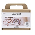 Wilt u weten hoe u uw eigen macramé regenboog maakt, dan is deze mini hobbyset echt iets voor u. Alles wat u nodig hebt, is inbegrepen in de kit. Wikkel de streng macramétouw om het touw en werk af met een macramé wikkelknoop. Naai ten slotte de bogen aan elkaar met naald en draad. Het resultaat is een prachtige regenboog waarmee u uw huis kunt versieren. Er staan instructies op de achterkant van de doos, maar u kunt ook de QR-code scannen en de online-instructies volgen.