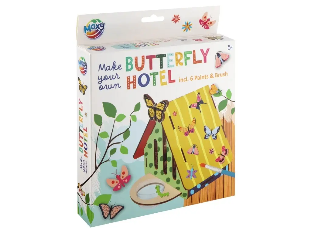 Met het MYO Butterfly Hotel creëer je in een handomdraai een gastvrije plek voor vlinders. Dit DIY-pakket bevat alles om zelf een charmant vlinderhuisje van 16 x 13 x 10 cm te maken.