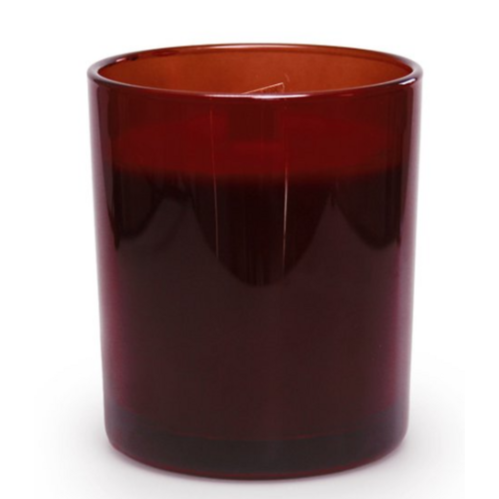 Plantaardige kaars met 50% parfum, kaars in gekleurd glas met houten wiek.