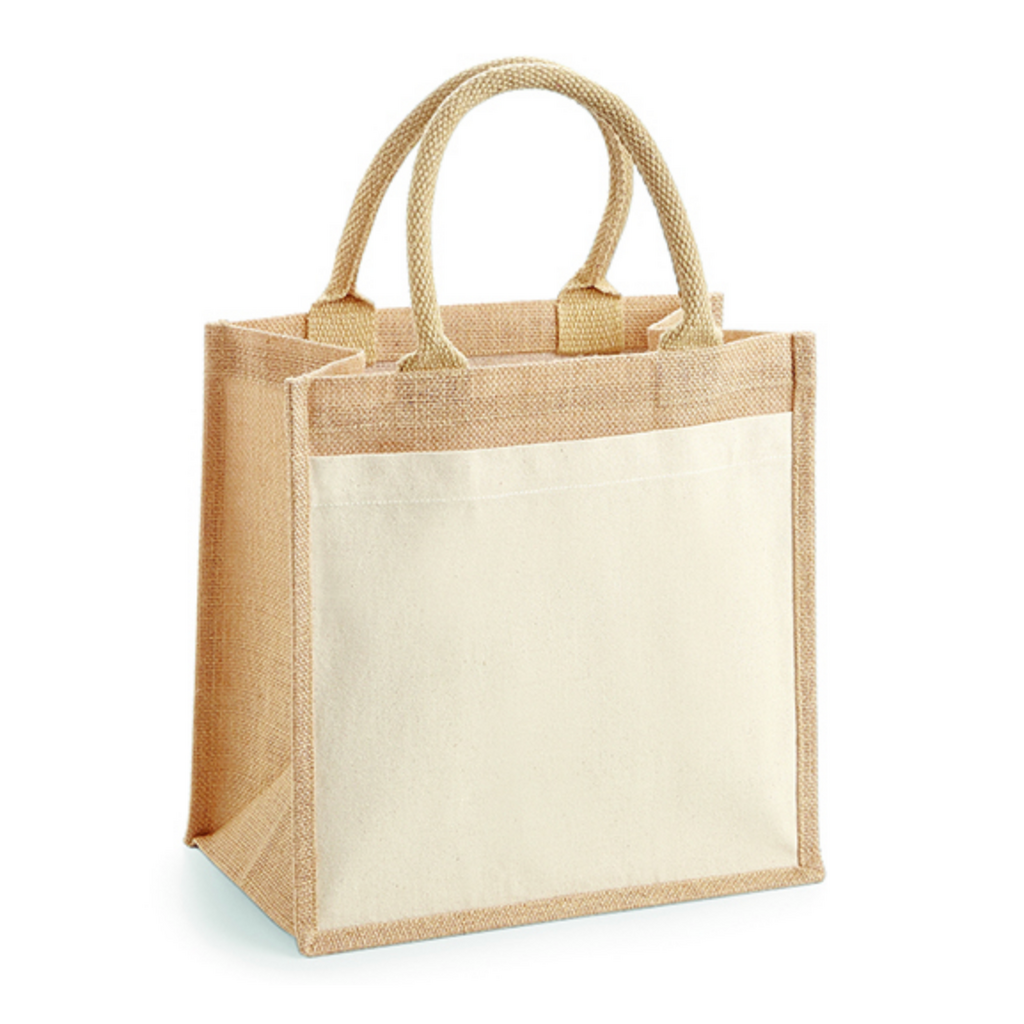 - Gelamineerde jute, 100% katoen canvas zak aan de voorkant