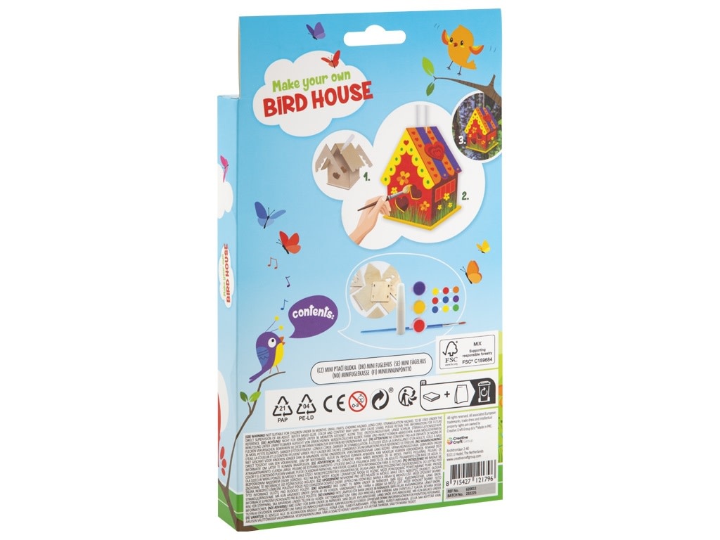 Ontdek creatief plezier met onze Mini Bird House Painting Kit! Deze set bevat alles wat je nodig hebt: verf, een verfborsteltje en lijm.