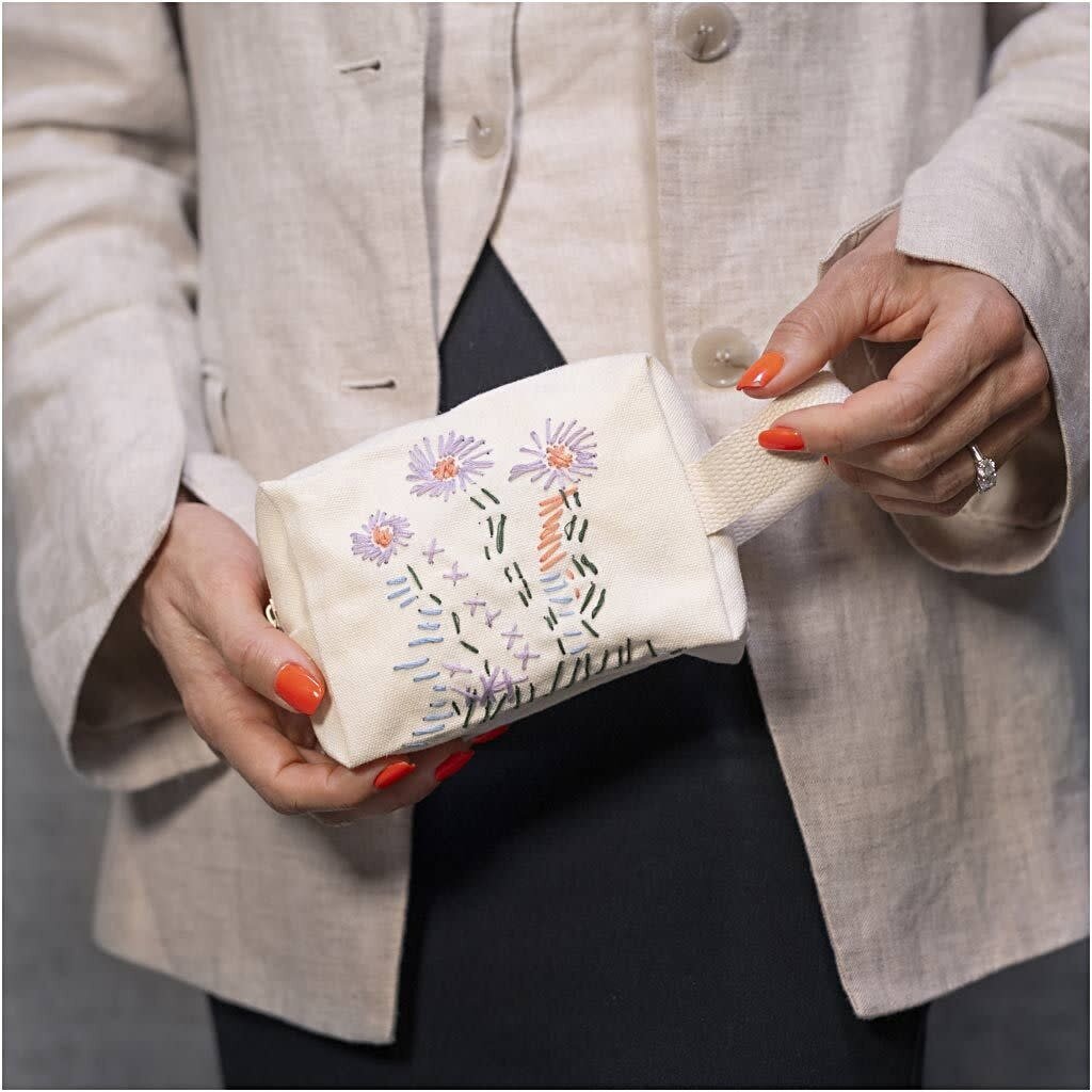 Wie zegt dat lijnen recht moeten zijn? Met deze borduurset ontwerp je een make-uptas die net zo uniek, leuk en persoonlijk is als jij zelf wilt. Volg de stippellijnen of creëer iets echt unieks. Het is jouw ontwerp en jouw proces – en de magie schuilt in het onvolmaakte.