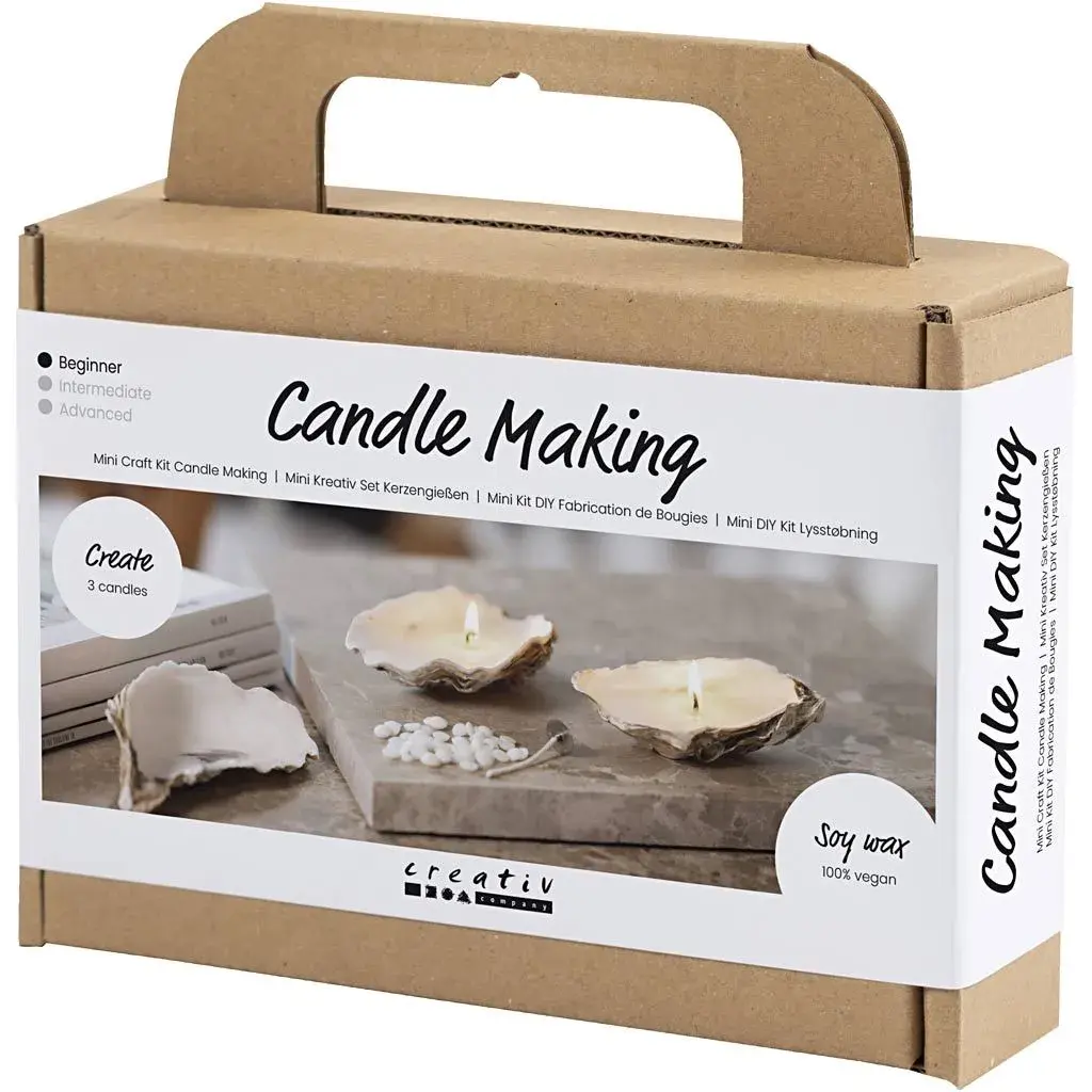 Als u thuis wel een beetje verwennerij kunt gebruiken, probeer dan onze Mini Hobbyset voor het gieten van kaarsen. Hier kunt u oesterschelpen en sojawas gebruiken om de mooiste kaarsen voor uw interieur te maken. De sojawas is 100% veganistisch, brandt schoon en roet veel minder dan traditionele kaarsen. En de oesterschelpen hebben een mooie, organische vorm die perfect past bij de huidige interieurtrends. Als u het moeilijk vindt om kaarsen te maken die goed zelf kunnen staan, kunt u een paar plakstippen onder de voet plaatsen.