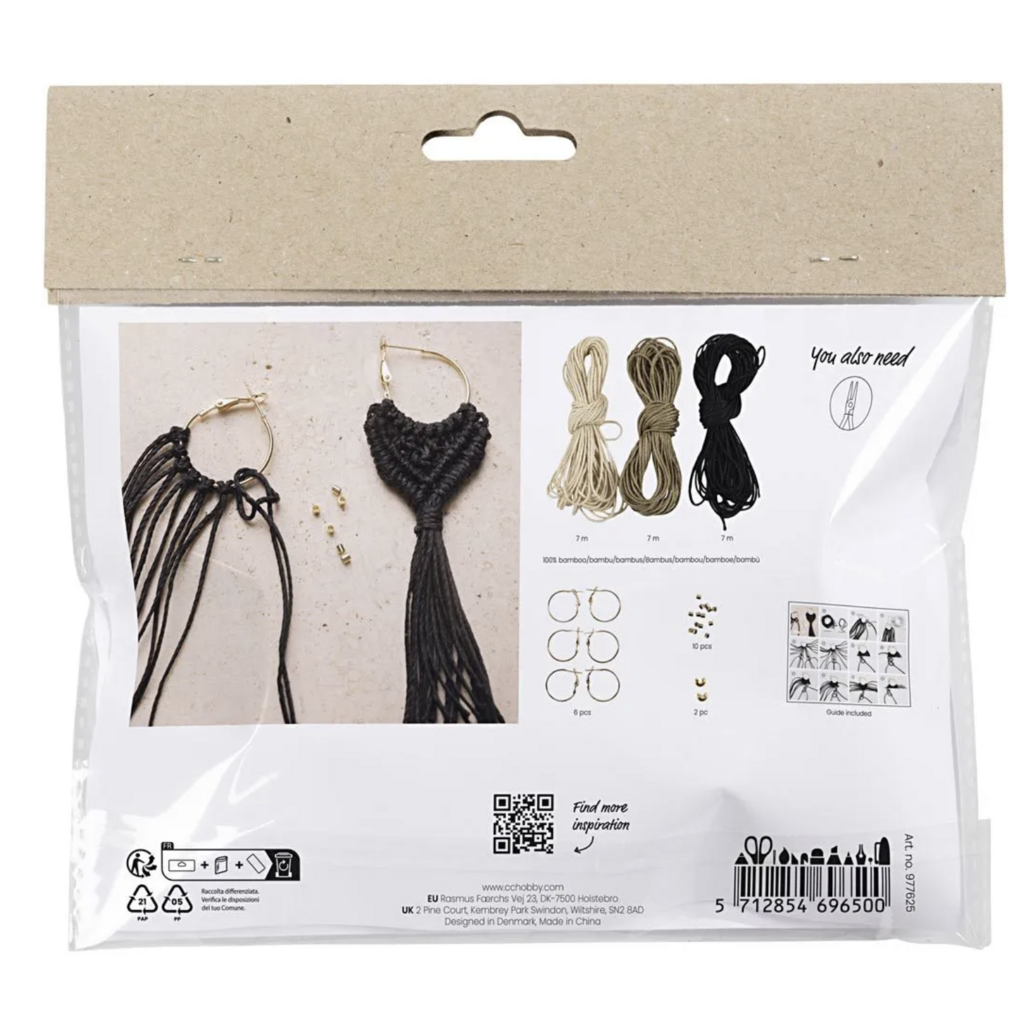 Met deze set kunt u drie sets oorbellen in een mooi en eigentijds boho-chic design knopen. Bevat alle benodigde instructies. Het enige wat u nodig heeft, is een sieradentang.
