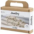 Als u altijd de nieuwste sieradentrends wilt volgen, dan is dit de perfecte set. Maak elegante sieraden die werkelijk indruk maken. U vormt de sieraden met verguld sieradendraad en voegt eenvoudige parelmoeren waskralen toe als decoratie. Maak twee sets oorbellen: één met een mooie spiraal en één met een schattige strik. U kunt ook uw eigen ring in dezelfde stijl maken.