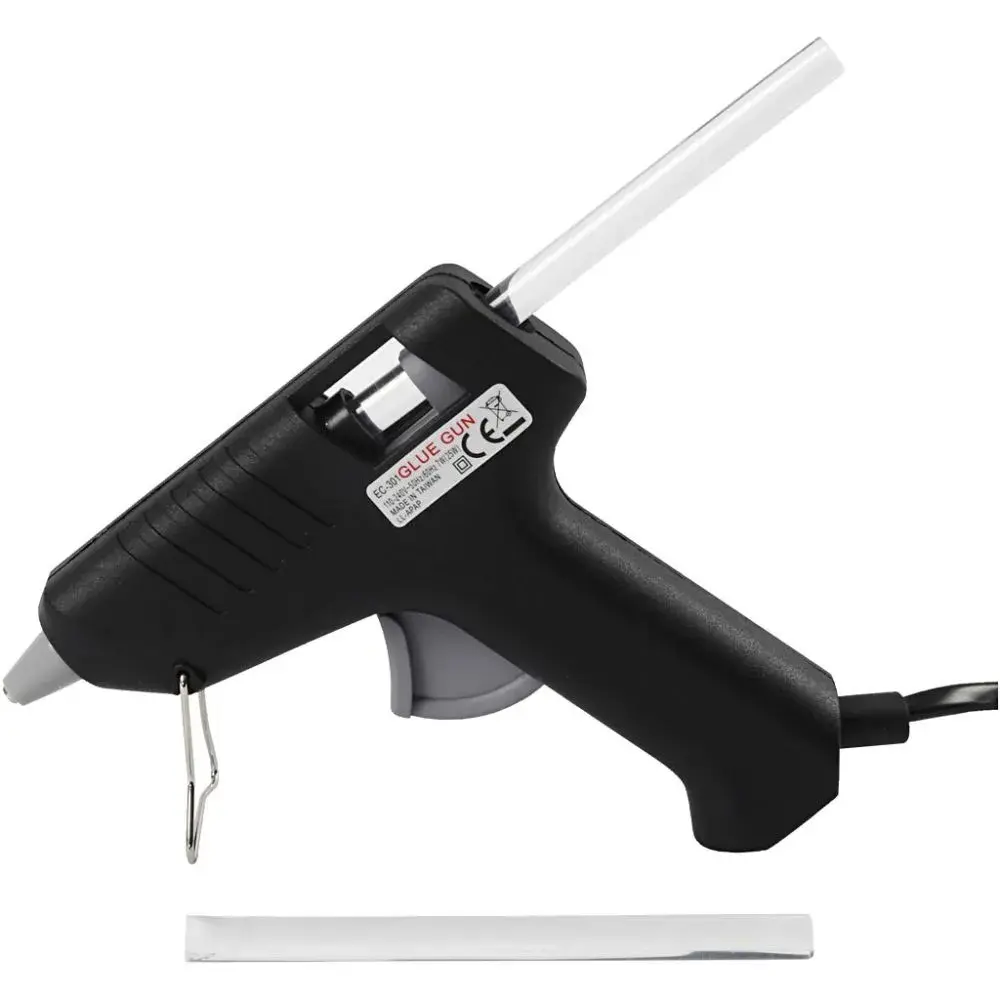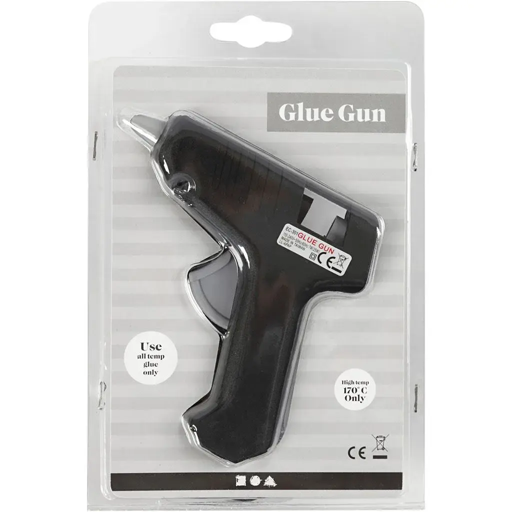Mini lijmpistool. Smelt 7 mm lijmsticks op 170°C (hoge temperatuur). Inclusief 2 sticks à 10 cm.