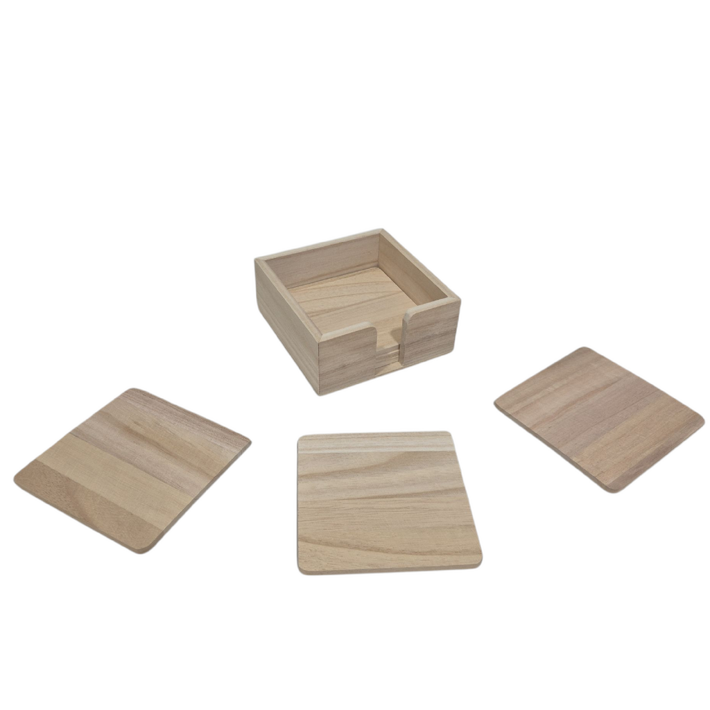 Onderzetters vierkant pauwlonia - set van 6 in houder