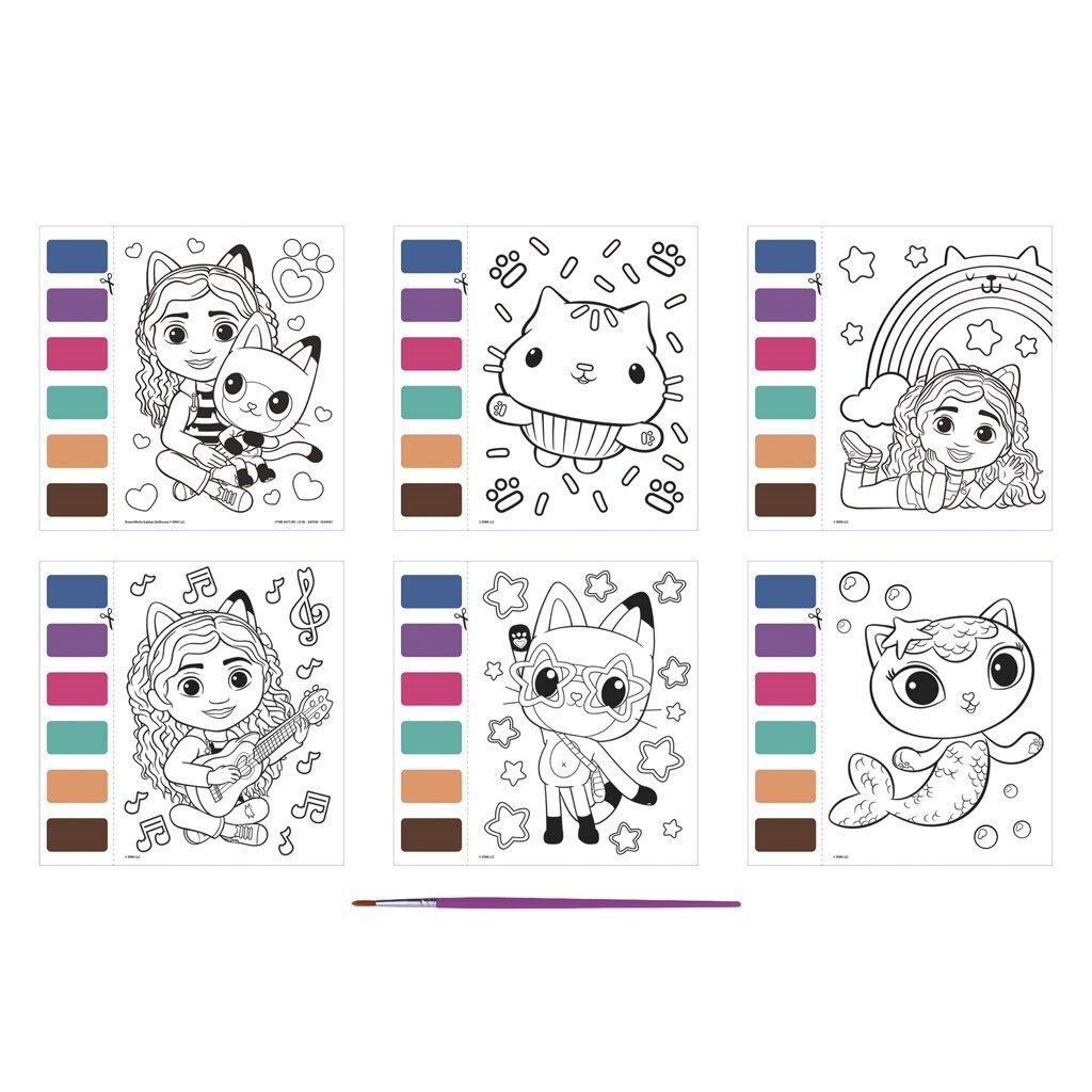 Voeg gewoon water toe aan je penseel en zie de kleuren tot leven komen – geen verf nodig! Met 6 prachtige vellen (21 x 21 cm) vol Gabby's Dollhouse plezier en een handige kwast is dit de perfecte activiteit voor kleine kunstenaars zonder geknoei.