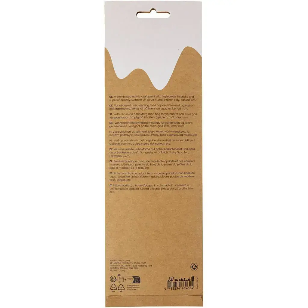 Schilder uw creatieve projecten met onze acrylverf op waterbasis in kleine potten. U krijgt zes verschillende kleuren, elk zorgvuldig geselecteerd voor het individuele kleurenpalet. Ze vullen elkaar prachtig aan en dankzij de hoge kwaliteit van de verf behaalt u gemakkelijk geweldige resultaten. We raden aan om de verf in 2-2-lagen aan te brengen, afhankelijk van de kleur van de ondergrond. Zo behaalt u een volledige dekking en kleurintensiteit. Breng de verf aan met een penseel en vergeet niet om deze na gebruik uit te spoelen in lauw water. De verf kan 2 jaar meegaan .