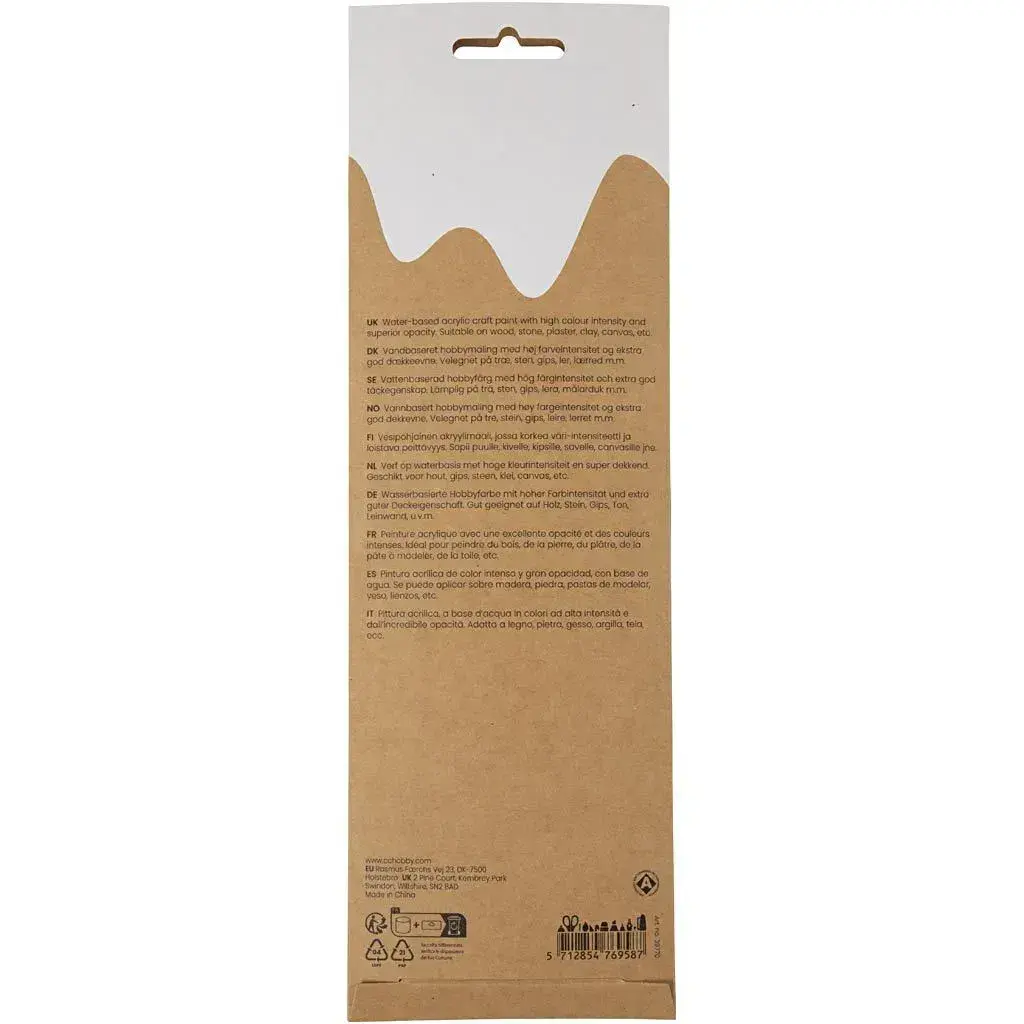 Schilder uw creatieve projecten met onze acrylverf op waterbasis in kleine potten. U krijgt zes verschillende kleuren, elk zorgvuldig geselecteerd voor het individuele kleurenpalet. Ze vullen elkaar prachtig aan en dankzij de hoge kwaliteit van de verf behaalt u gemakkelijk geweldige resultaten. We raden aan om de verf in 2-2-lagen aan te brengen, afhankelijk van de kleur van de ondergrond. Zo behaalt u een volledige dekking en kleurintensiteit. Breng de verf aan met een penseel en vergeet niet om deze na gebruik uit te spoelen in lauw water. De verf kan 2 jaar meegaan .