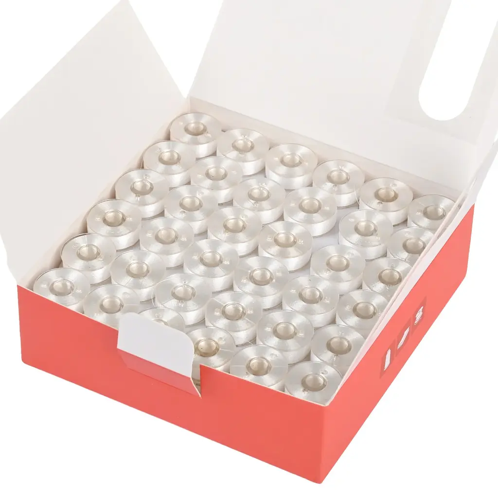 Dankzij de transparante kunststof spoeltjes zie je in één oogopslag hoeveel draad er nog over is. Ze beschermen de draad bovendien tegen stof, vocht en olie, zodat de kwaliteit en spanning behouden blijven.