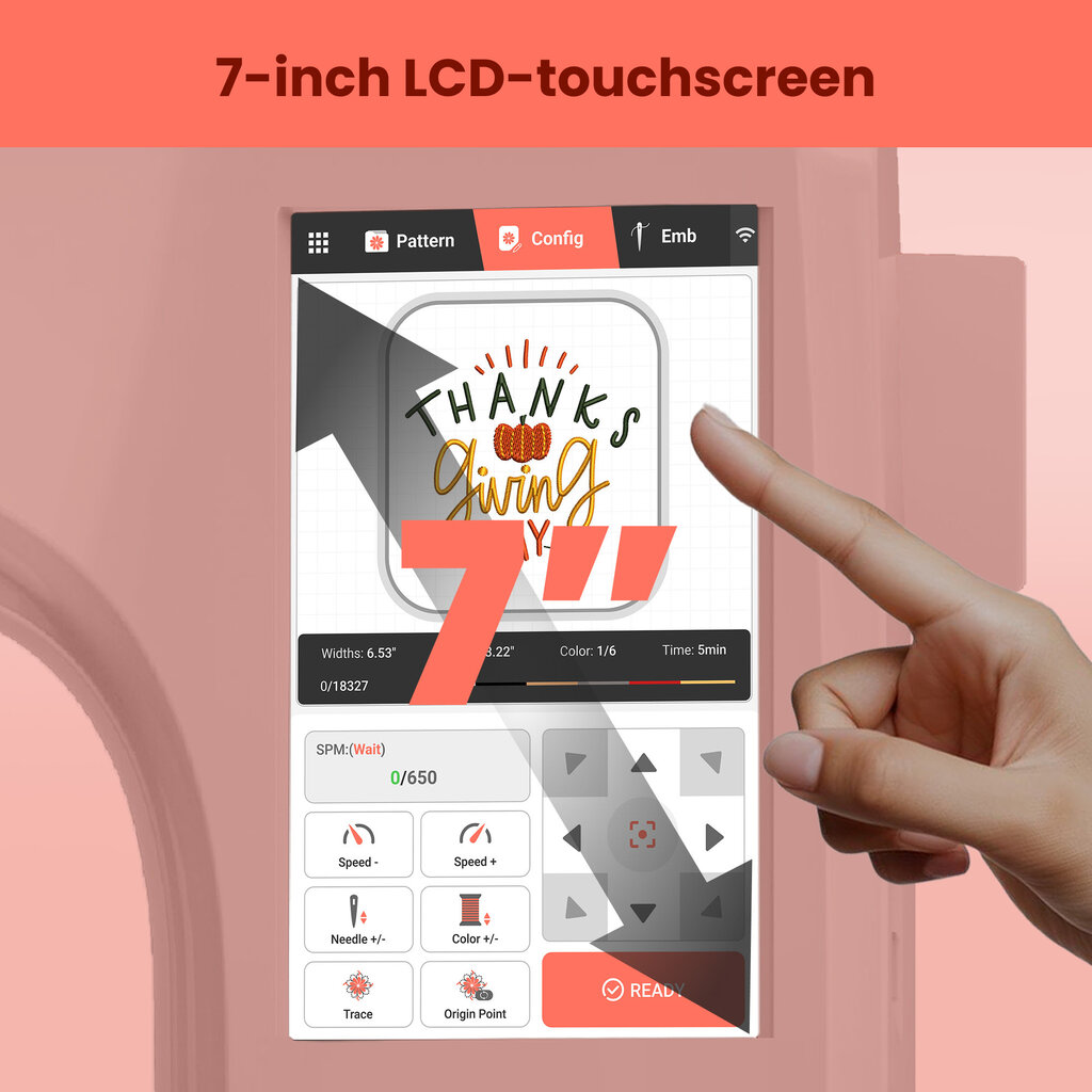 Deze machine is ontworpen om je snel op weg te helpen, zonder overweldiging. Beginners leren vlot dankzij de duidelijke bediening en begeleiding op het scherm, terwijl gevorderden rekenen op een betrouwbare machine met nauwkeurige steekkwaliteit voor complexere ontwerpen.